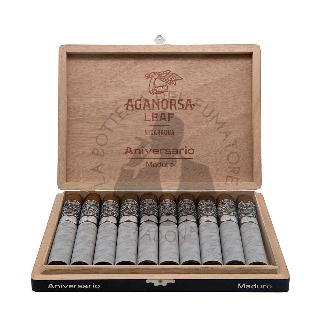 L’Aganorsa Leaf Aniversario Maduro Gran Robusto, spicca per il suo sapore profondo ed è caratterizzato da un fumo corposo e da una ricca complessità che incoraggia ripetuti assaggi. Gli intenditori ne apprezzeranno gli aromi raffinati e la qualità della sua manifattura.