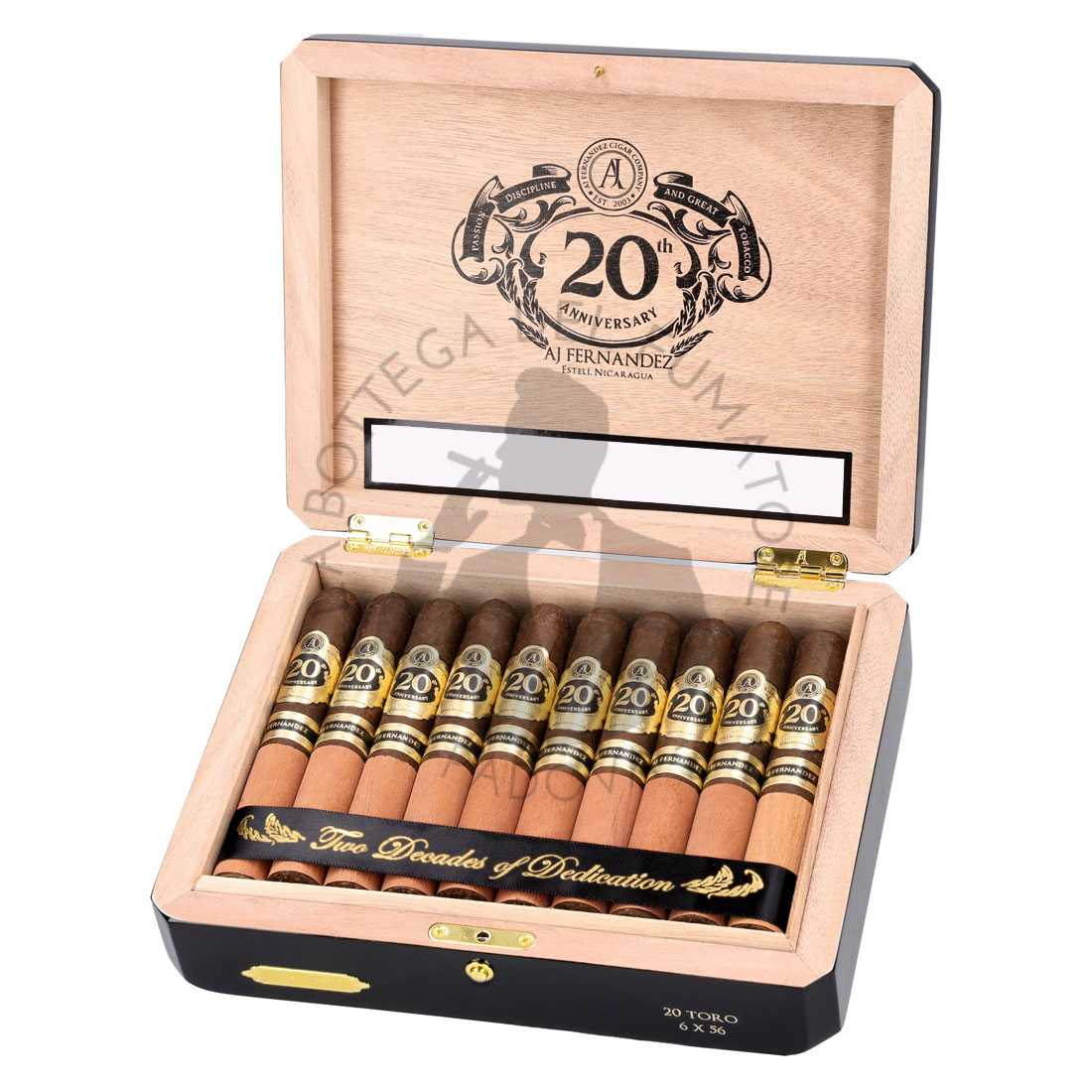 L’AJ Fernandez 20th Anniversary Toro, è un sigaro in edizione limitata realizzata con una misteriosa miscela di tabacchi, e creata per celebrare il ventesimo anniversario del marchio A.J.Fernandez. Avete mai sentito l’espressione “il progresso è prima graduale, poi improvviso”? Questo potrebbe spiegare il successo improvviso di A.J. Fernández, un uomo che è passato dal rollare sigari nel suo garage a diventare uno dei primi produttori al mondo, il tutto nell’arco di vent’anni.