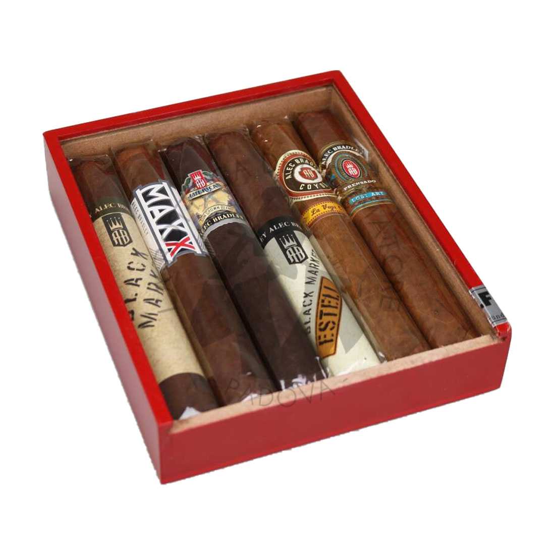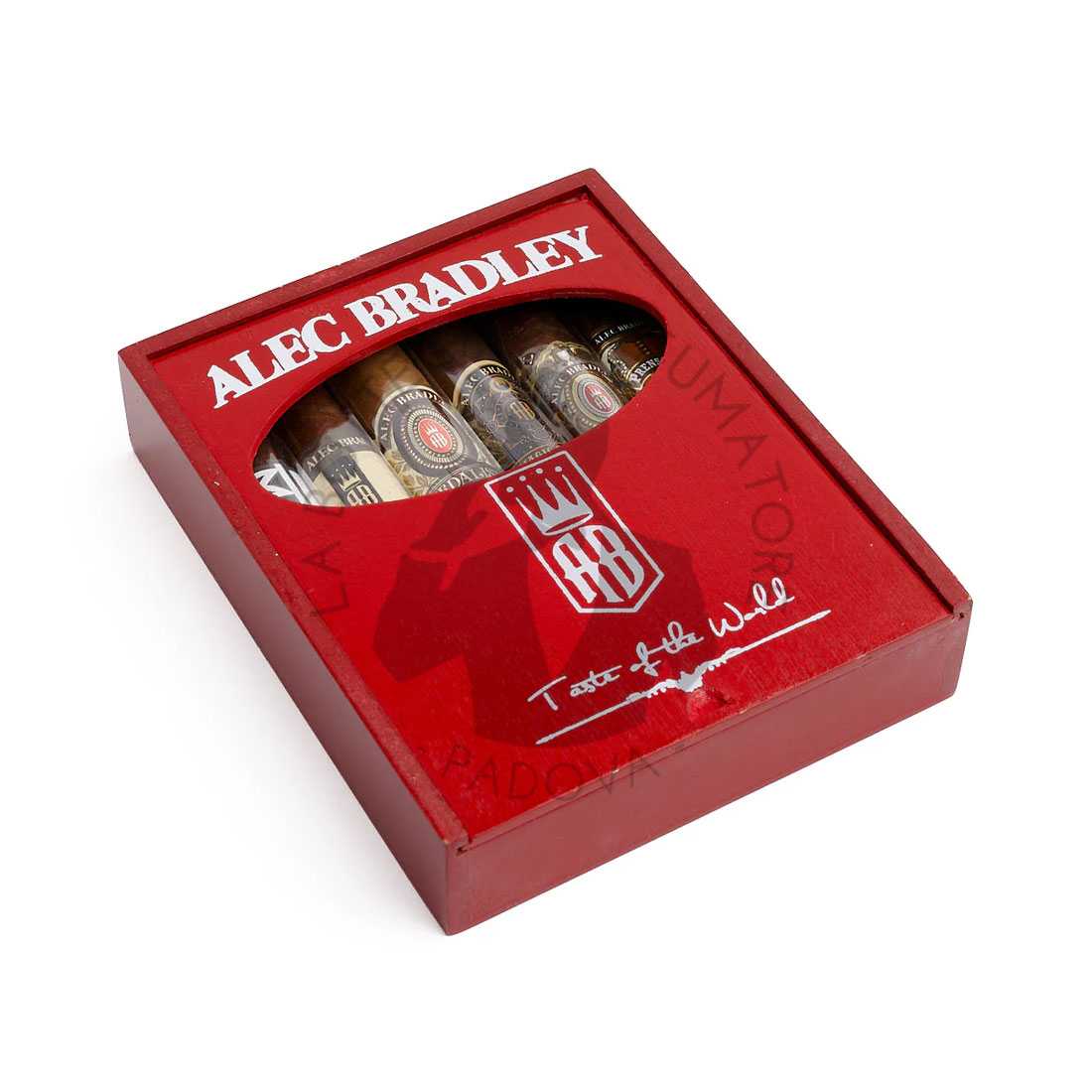 Il cofanetto Alec Bradley Taste of the World è una selezione esclusiva pensata per offrire un viaggio sensoriale attraverso alcune delle migliori creazioni del marchio. All’interno della confezione troviamo sei sigari assortiti, ognuno rappresentativo di una diversa linea Alec Bradley. Accuratamente scelti per mettere in risalto la varietà di blend, origini e intensità.