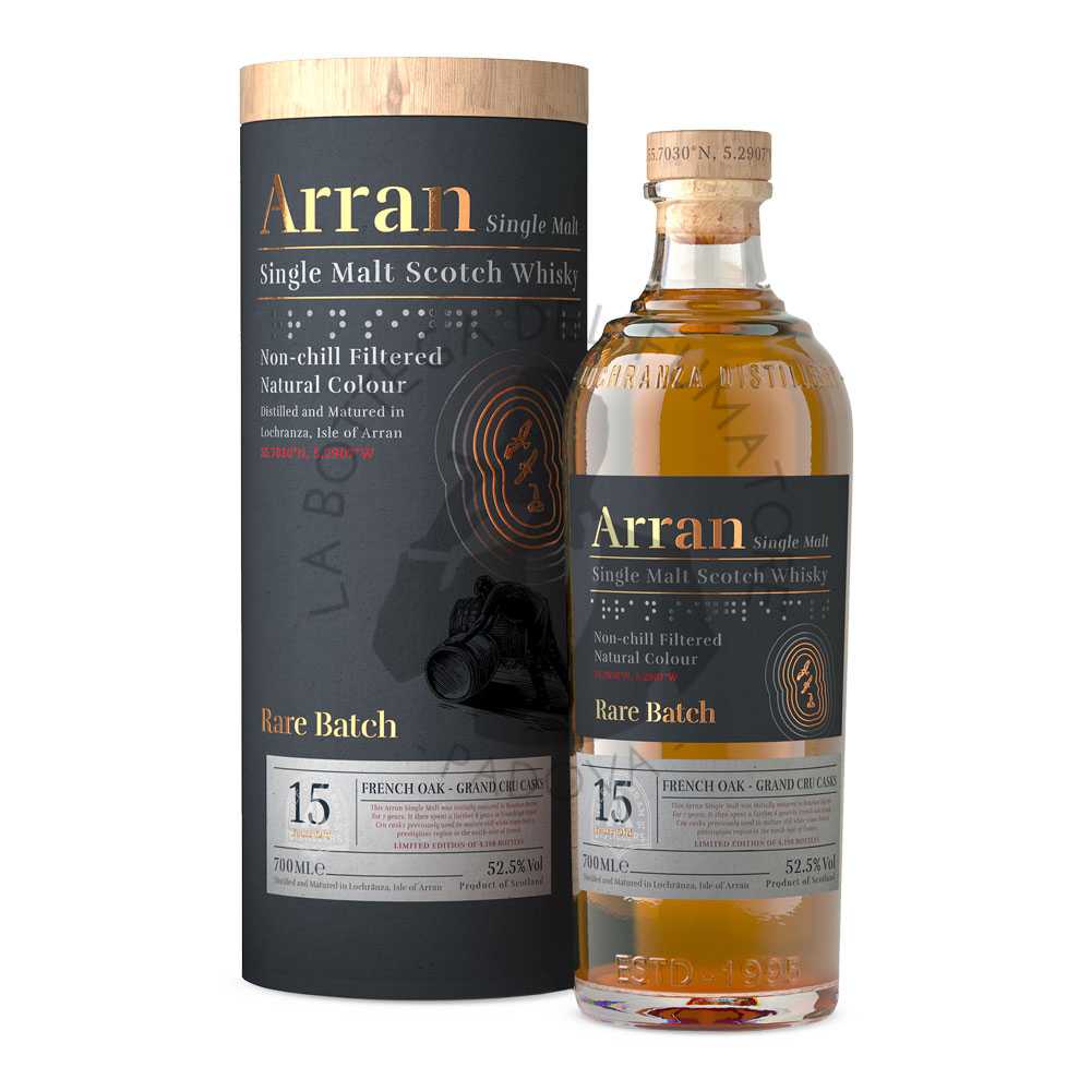 Ci sono whisky che non puntano sulla forza, ma sulla finezza. L’Arran 15 Years Old Rare Batch – French Oak Grand Cru Casks appartiene a questa categoria: una release che racconta una storia fatta di legni nobili, di lunghi affinamenti e di un dialogo sorprendentemente armonico tra l’Isola di Arran e il mondo del vino francese.