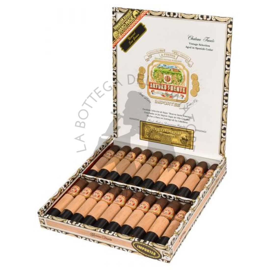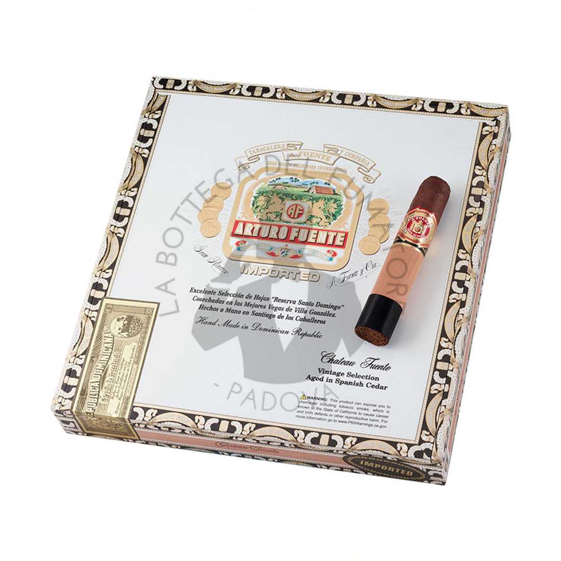 La linea Chateau Fuente rappresenta uno dei cuori pulsanti della produzione Fuente: una collezione di sigari pensata per offrire eleganza, consistenza e accessibilità, senza rinunciare alla qualità artigianale che ha reso celebre la famiglia. Nata come tributo alla tenuta dominicana di proprietà della famiglia, il celebre Chateau de la Fuente. questa linea si distingue per la cura estrema nel selezionare tabacchi invecchiati, lavorati con metodi tradizionali.