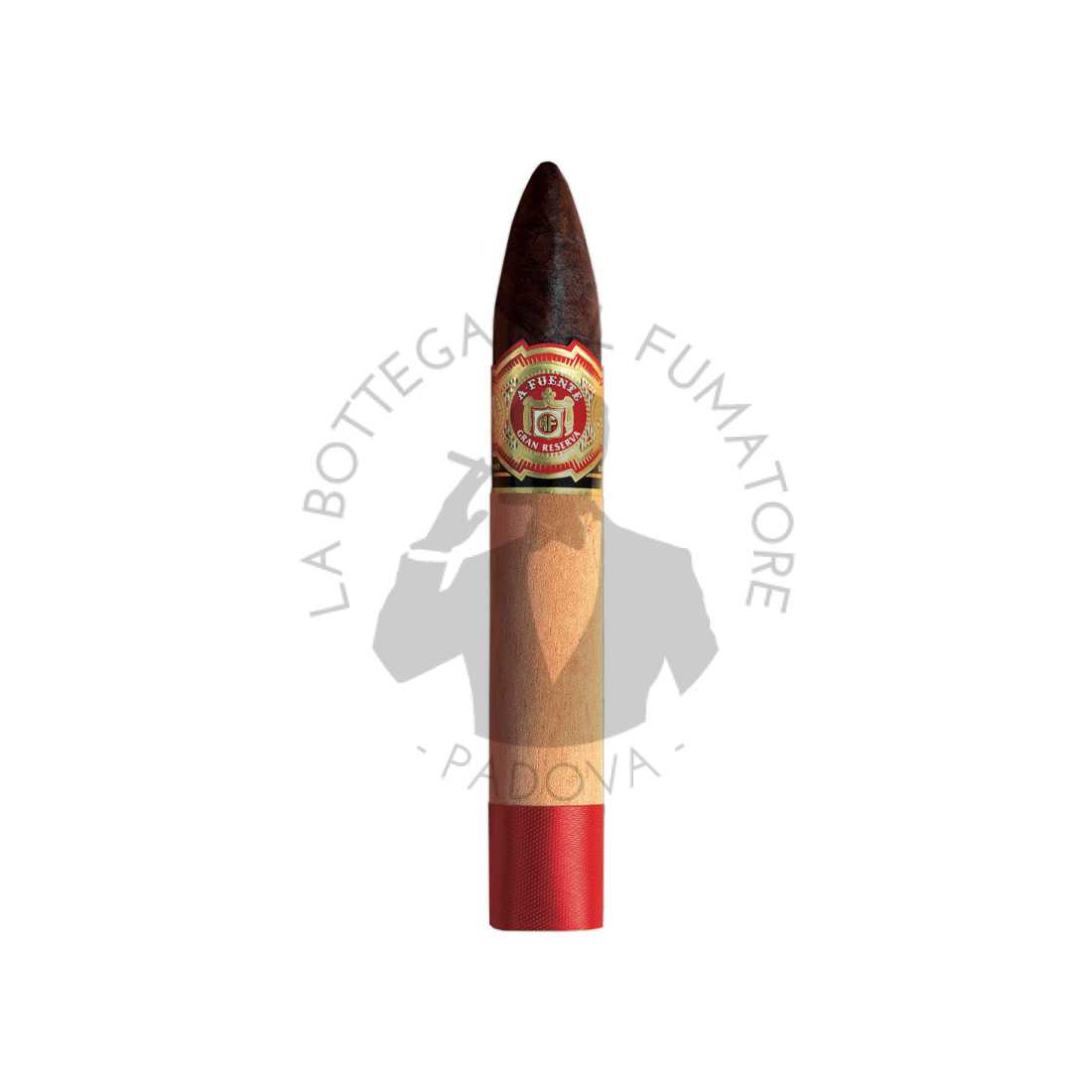 Un dettaglio che li rende iconici è certamente la fascetta di cedro che avvolge ogni sigaro, trattenuta da un nastro colorato alla base: un gesto semplice ma distintivo, che racconta la raffinatezza del marchio. La linea Chateau è la porta d’ingresso ideale all’universo Fuente: equilibrata, classica e straordinariamente affidabile.