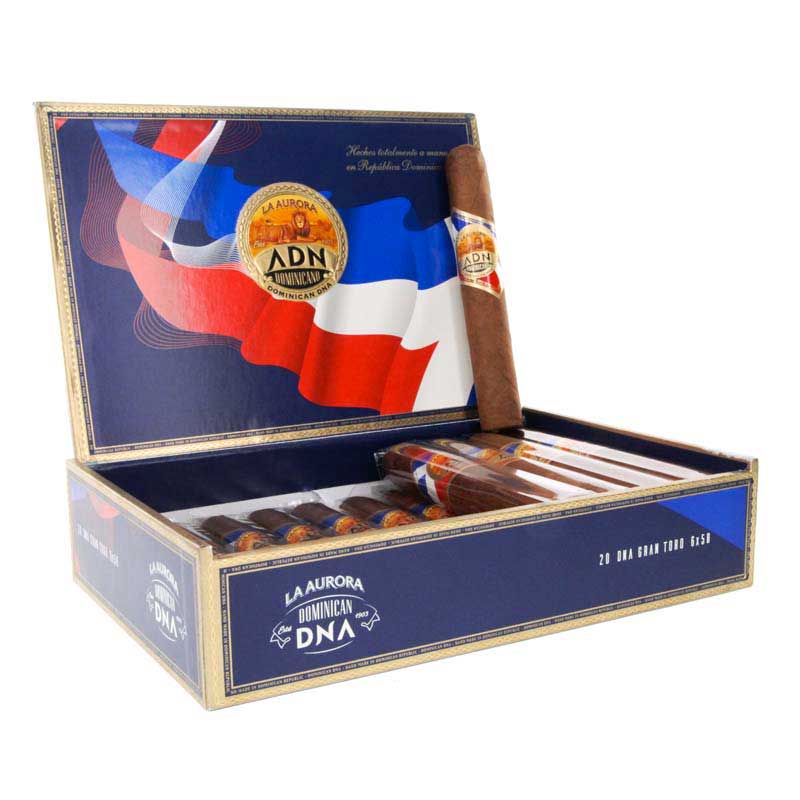 La Aurora con la linea ADN Dominicano, vuole rendere omaggio al più antico processo di lavorazione del tabacco, originario della Repubblica Dominicana: L’Andullo. Un tabacco difficile da lavorare, che richiede molta esperienza e grande maestria. E’ a dir poco un tabacco unico nel suo genere, la sua intensità, il suo aroma ricco e la sua dolcezza, vengono uniti ne La Aurora ADN Gran Toro ad un equilibrato mix di tabacchi, che regalano complessivamente una fumata straordinariamente unica!