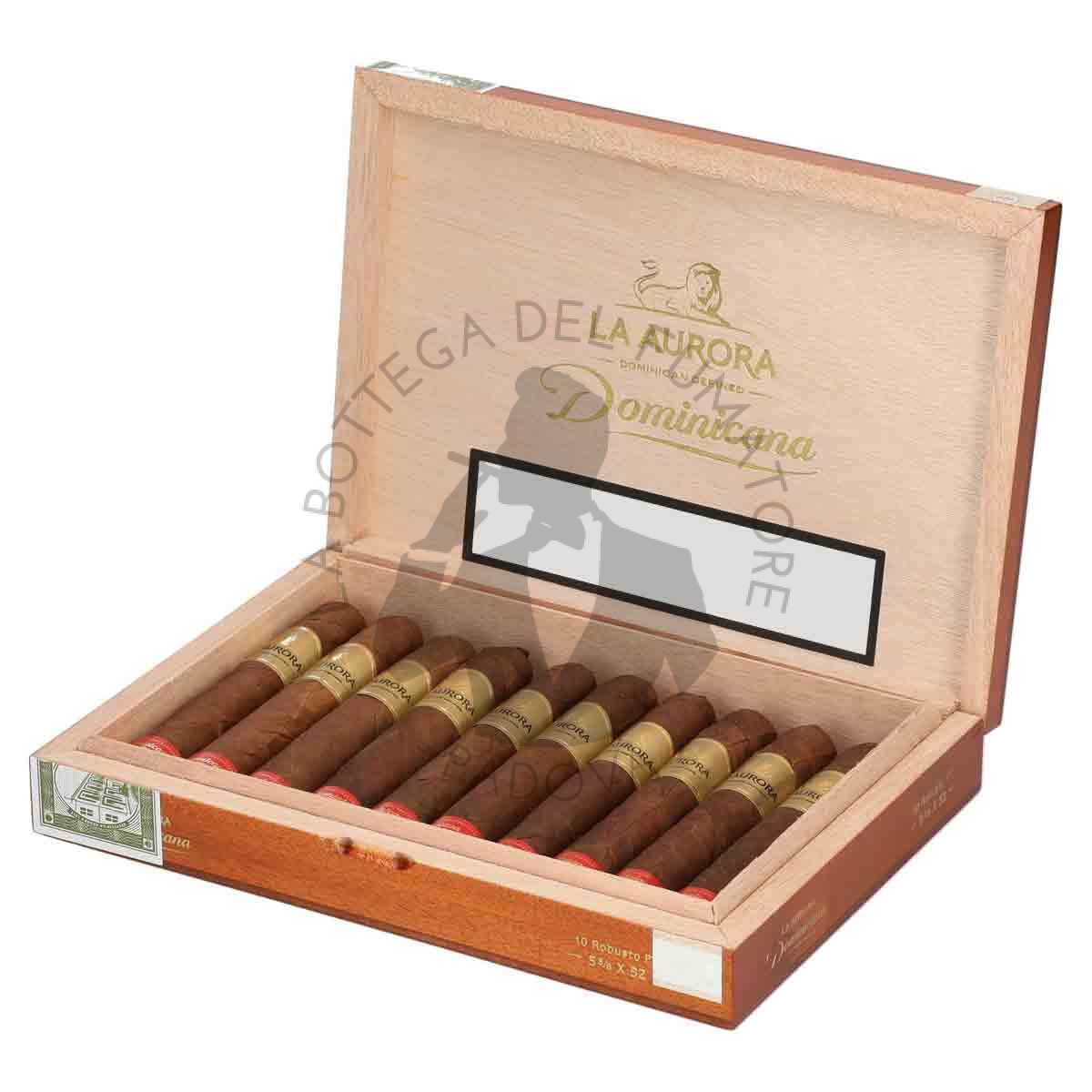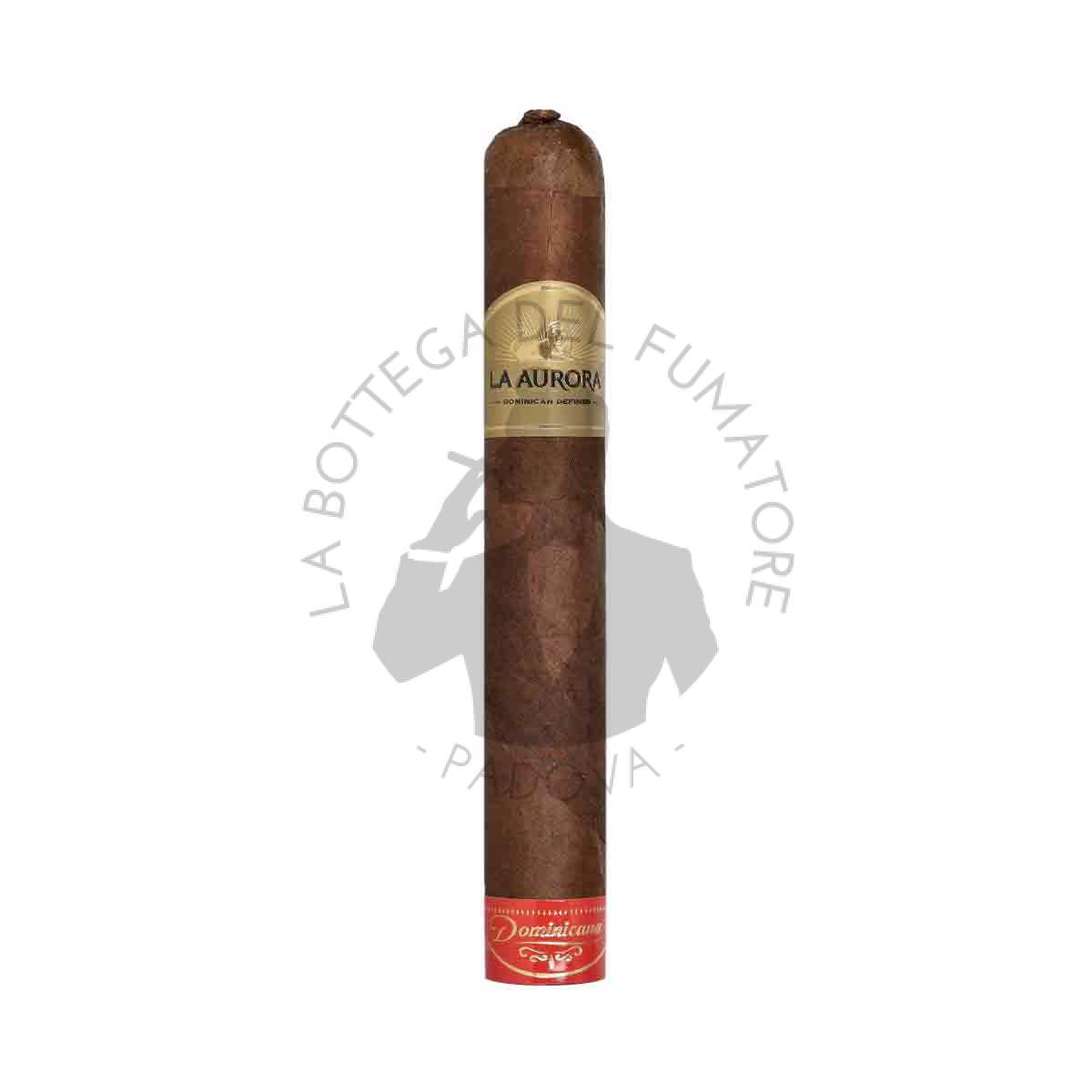 La Aurora Dominicana Toro è la versione più ampia e distesa della linea, pensata per valorizzare al massimo la complessità del blend dominicano. Con questo formato generoso, La Aurora permette al fumatore di vivere una fumata lenta, ricca e stratificata, capace di esprimere a fondo l’equilibrio tra tradizione e modernità.