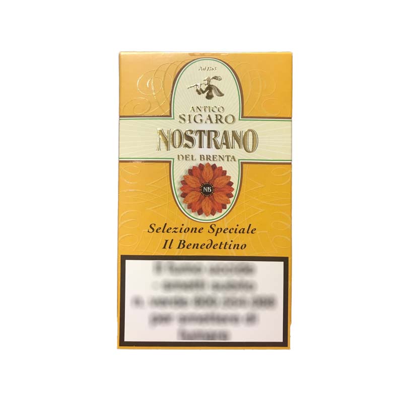 Il Benedettino di Manifattura Nostrano del Brenta è un sigaro costruito a partire da una miscela di Tabacchi Nostrano invecchiati tra i 3 ed i 5 anni ed arricchita nel ripieno, da un tabacco proveniente dalla Repubblica Dominicana, miscelati nelle proporzioni 75% – 25%. Da questa particolare combinazione si è ottenuto un sigaro complesso ed intenso e dall’aroma avvolgente e pieno.