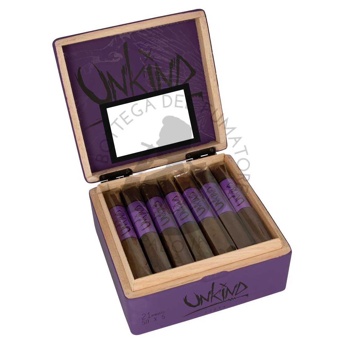 La linea Unkind è proposta nei formati più apprezzati dagli appassionati: Robusto, Toro e Gran Toro. Tutti presentati in scatole da 21 sigari dal design moderno e accattivante, caratterizzato da tonalità viola che riflettono la natura anti convenzionale della linea. È un sigaro pensato per fumatori curiosi ed esperti, che amano esplorare blend complessi e fuori dagli schemi.