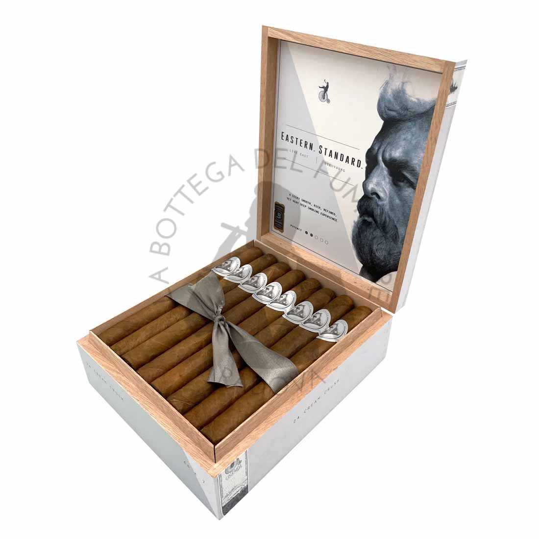 Eastern Standard non fa eccezione a ciò, con ha una capa ibrida proprietaria della tabacalera (Connecticut Shade + Brasilian Mata Fina). Il capote è un Habano Dominicano, ma il pezzo forte è certamente nella tripa: Dominican Criollo 98, Dominican Corojo Ligero, Nicaraguan Habano.