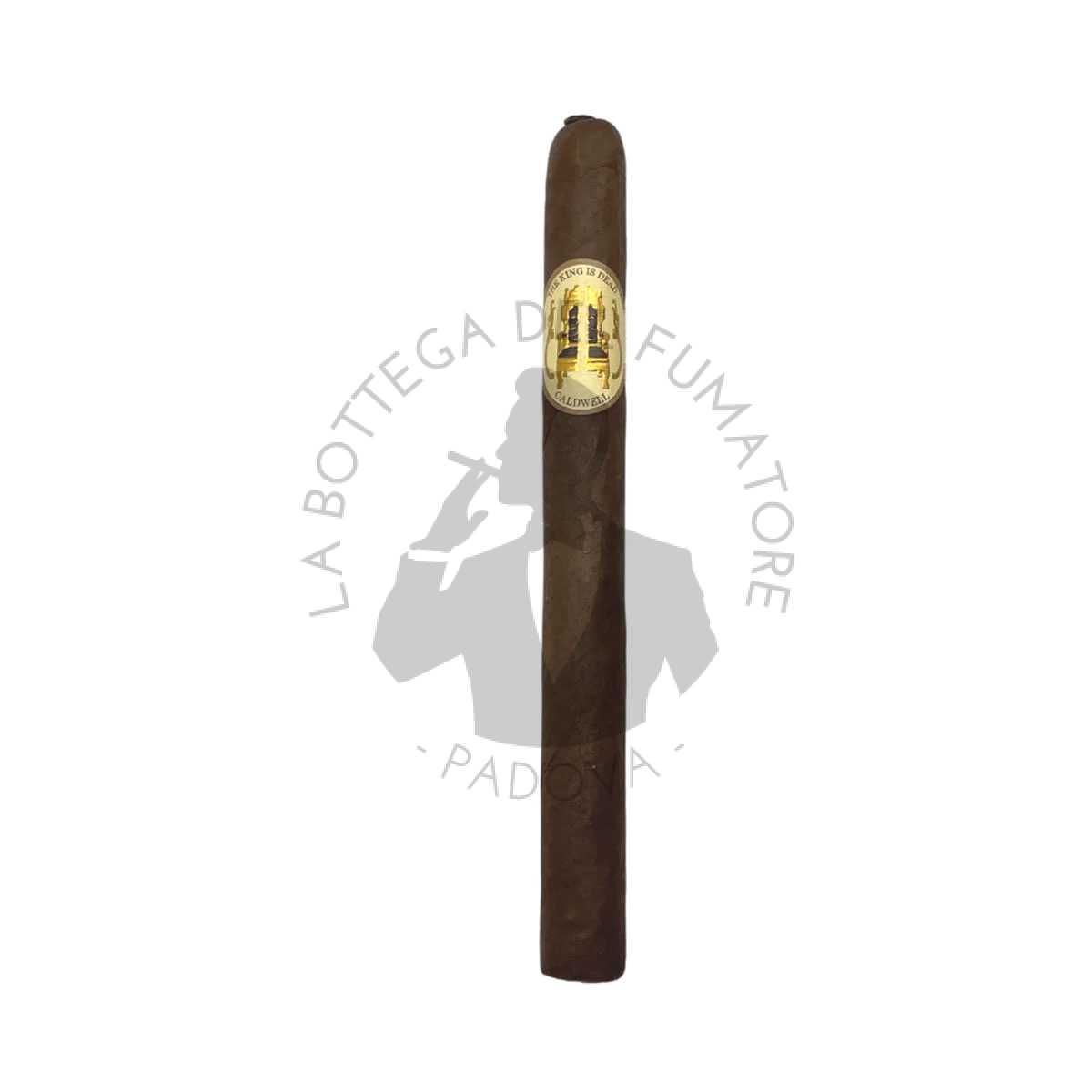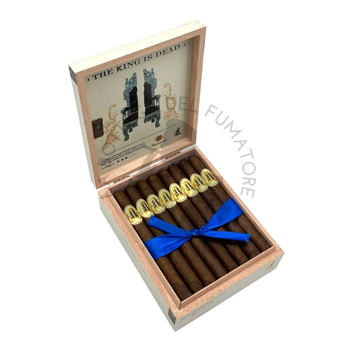 I sigari della linea The King Is Dead, sono quasi chiusi con l’iconico pigtail in testa, ad eccezione del manzanita e del Belicoso. La capa di tabacco Negrito Dominicano, si presenta di uno splendente color cioccolato, leggermente marezzato, ma ben steso. A freddo si percepiscono distintamente un forte aroma di cacao, frutta e pelle, che ritroviamo sin dai primi sbuffi, con la frutta e la dolcezza a farla da padrone. La parte centrale è caratterizzata da aromi piu sapidi, mescolati a legno di cedro, e un forte aroma di peperone. Nel finale ritorna la profonda dolcezza del cacao, mescolata ad un aroma di terra, segno che il sigaro sta per esaurire i suoi aromi. La conclusione lascerà un po di amaro in bocca: peccato che sia finito cosi presto!