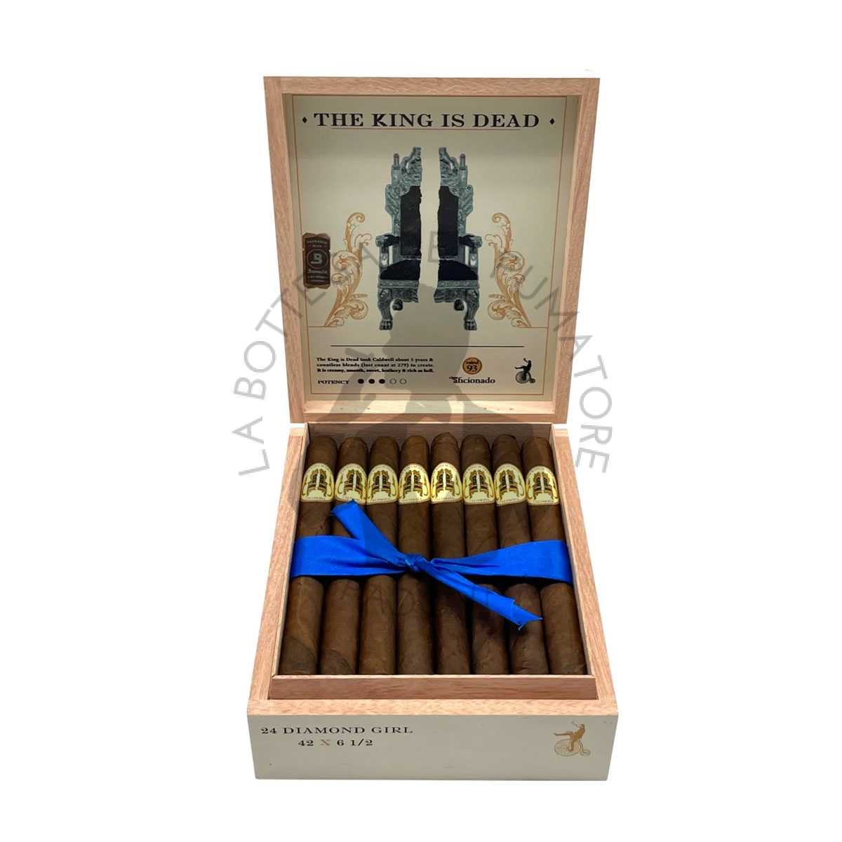 Ci sono voluti piu di cinque anni per ottenere la miscela del Caldwell The King Is Dead Diamond Girl. Un lungo tempo ben speso se consideriamo il sapore incredibilmente sofisticato e perfettamente equilibrato di questo superbo sigaro Dominicano. Aspettatevi spezie moderate bilanciate da una dolcezza al cioccolato al latte. Questo è forse il sigaro di Caldwell più unico. Fumatelo se volete impressionare il vostro partner!