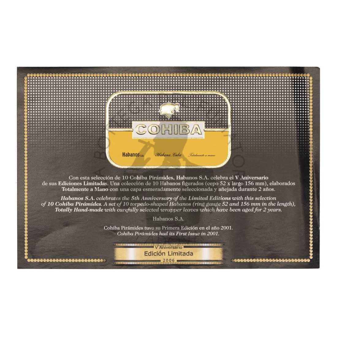 Il Cohiba Piramides Ed. Lim. 2006, altro non è che una riedizione della versione presentata cinque anni prima (2001). Aggiornata nella presentazione, e nel confezionamento. Questa release è confezionata in scatole Black Lacquered boîte nature da dieci sigari ciascuna. Molto simile a quella utilizzata oggi per i Cohiba Maduro5. Con questa selezione, Habanos S.A. ha voluto celebrare il quinto anniversario delle sue edizioni limitate.