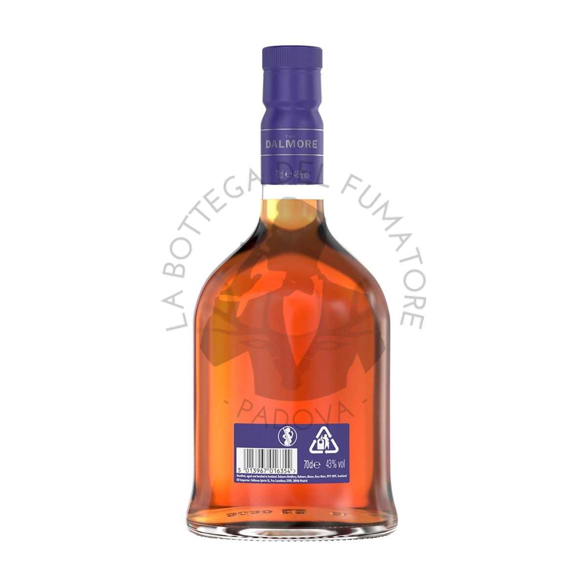 Costantemente controllato durante l’intera fase della maturazione, questo spirito è inizialmente invecchiato per 10 anni, in botti di rovere bianco americano ex-Bourbon. Per trasmettere al whisky l’impronta profonda della distilleria, caratterizzata da note di cioccolato, arancia e spezie. Successivamente il finish di due anni in botti che in precedenza contenevano uno sherry unico, creato appositamente per The Dalmore. Una miscela di Oloroso invecchiato e ricco e dolce Pedro Ximénez. Esalta al meglio lo stile della distilleria.