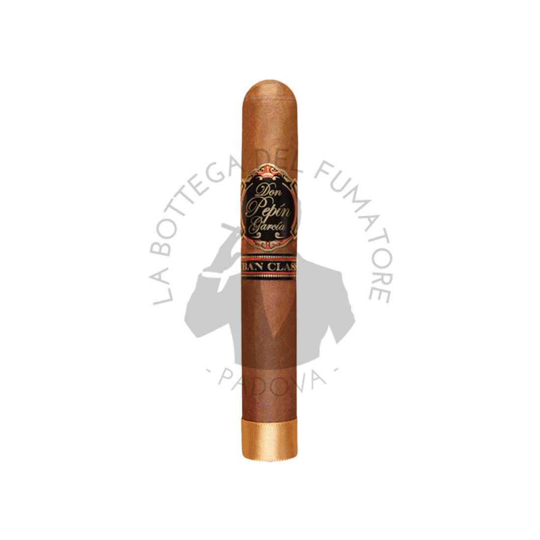 La serie Don Pepin Garcia Cuban Classic 2001, noto anche con il nome di Black Label. È un altro (l’ennesimo) raffinato sigaro nicaraguense della scuderia di My Father Cigars. Presenta una fascia in tabacco Habano Rosado, setosa, grassa e di colore marrone dorato. Capote e Tripa sono come di consueto realizzati con misteriosi tabacchi nicaraguensi, invecchiati con cura. La particolarità di questo sigaro sta tutta nella foglia di fascia. Nota per le sue soavi note speziate, una qualità questa, che attrae molte persone verso i sigari Don Pepin. Il formato (Vitola de Galera) è Toro Gordo, e misura 152 mm di lunghezza per 60″ di cepo.