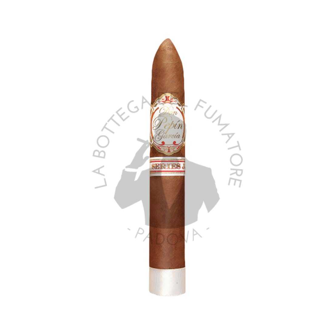 La serie JJ prende il nome dal primo nome di Pepin (Jose) e da quello di suo figlio (Jaime). Don Pepin Garcia JJ Belicosos è un delizioso sigaro fatto a mano presso la fabbrica El Rey de Los Habanos a Miami. Rivestito da una foglia di fascia in tabacco Corojo-Rosado di un brillante color caramello, oleosa e liscia. Capote e tripa invece sono interamente nicaraguensi e coltivati nelle piantagioni di proprietà di My Father Cigars, nelle regioni di Jalapa ed Estelì.