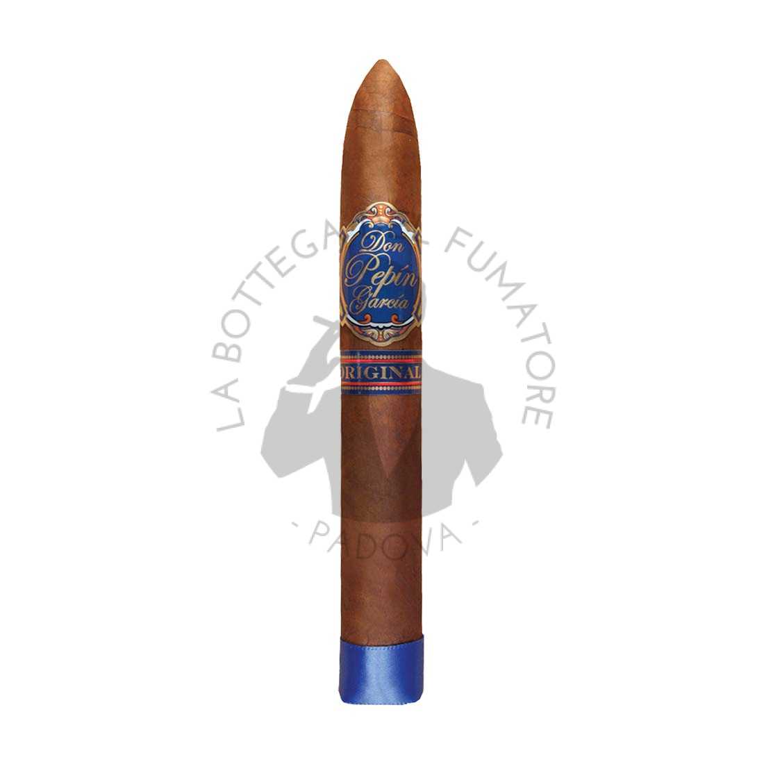 Il Don Pepin Garcia Original Imperiales, noto anche come Don Pepin Blue Label, è uno di quei sigari che hanno aperto le porte al successo, ai leggendari produttori di sigari, Jose e Jaime Garcia. Questi sigari di corpo pieno, vestono una capa in tabacco Corojo Oscuro dal Nicaragua. Lucida, oleosa e di colore marrone brillante con sfumature rossastre. Sotto alla quale si trovano ripieni long filler dal Nicaragua ben invecchiati e altamente fermentati, tenuti assieme da un capote Criollo, anch’esso coltivato in Nicaragua. Nelle piantagioni di proprietà della Famiglia Garcia. Sono disponibili in eleganti scatole di cedro a ribalta, fatte a mano da 24 sigari ciascuna.