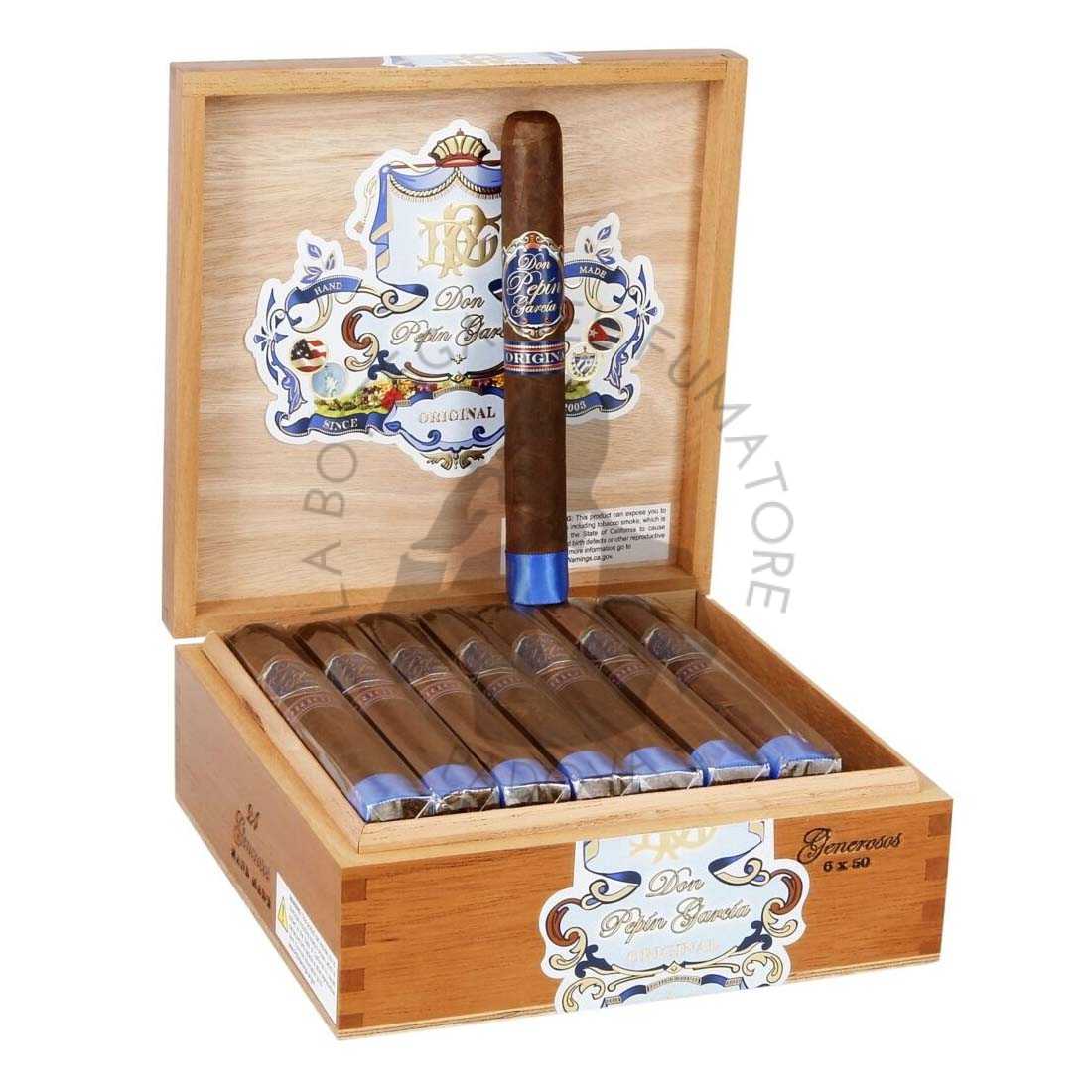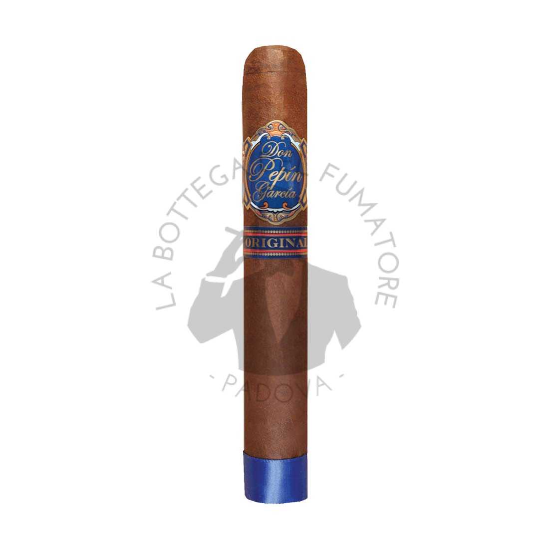 Il Don Pepin Garcia Original Toro Gordo , noto anche come Don Pepin Blue Label, è uno di quei sigari che hanno aperto le porte al successo, ai leggendari produttori di sigari, Jose e Jaime Garcia. Questi sigari di corpo pieno, vestono una capa in tabacco Corojo Oscuro dal Nicaragua. Lucida, oleosa e di colore marrone brillante con sfumature rossastre. Sotto alla quale si trovano ripieni long filler dal Nicaragua ben invecchiati e altamente fermentati, tenuti assieme da un capote Criollo, anch’esso coltivato in Nicaragua. Nelle piantagioni di proprietà della Famiglia Garcia. Sono disponibili in eleganti scatole di cedro a ribalta, fatte a mano da 24 sigari ciascuna.
