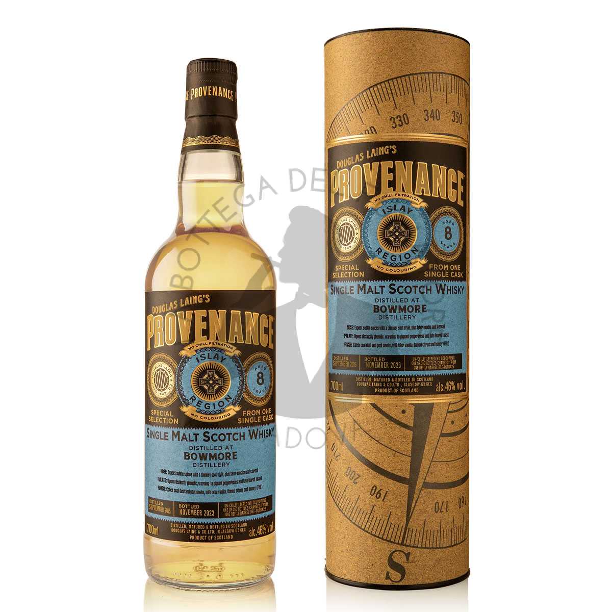 Distillato nel settembre del 2015 ed imbottigliato ad agosto 2023, questa espressione della distilleria Bowmore ha quindi trascorso 8 anni a maturare in barili “refill” ossia gia precedentemente utilizzate. Prodotto in appena 310 bottiglie per tutto il mondo, questo Douglas Laing Provenance Bowmore 8 Years Old, viene offerto “il più naturale possibile”. Quindi senza alcuna colorazione o correzione, e soprattutto senza filtrazione a freddo.