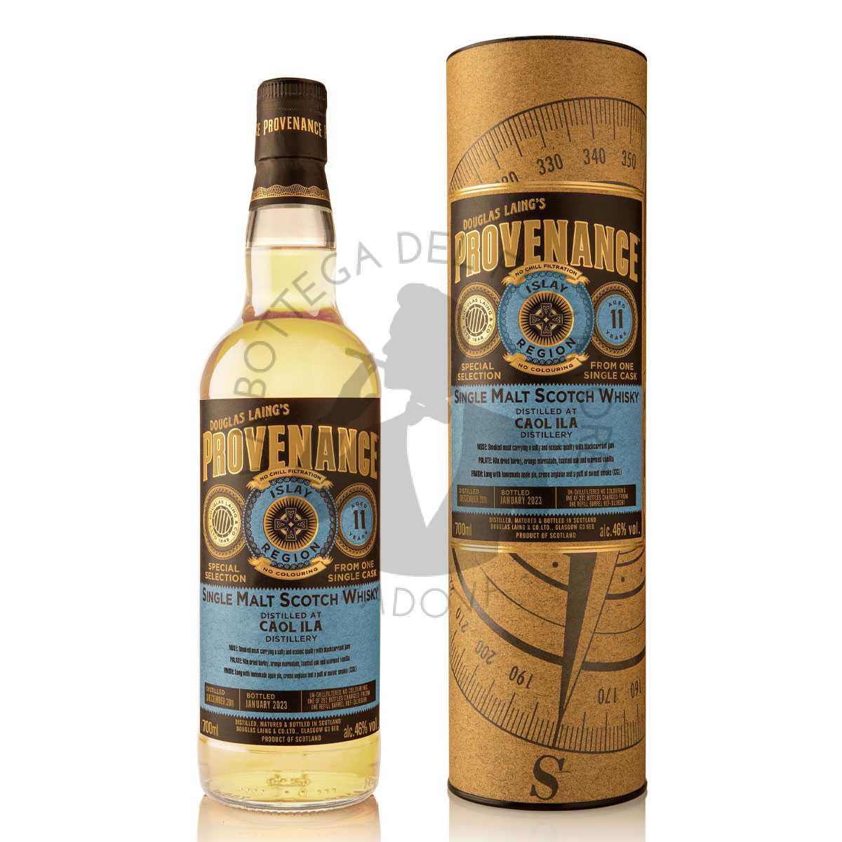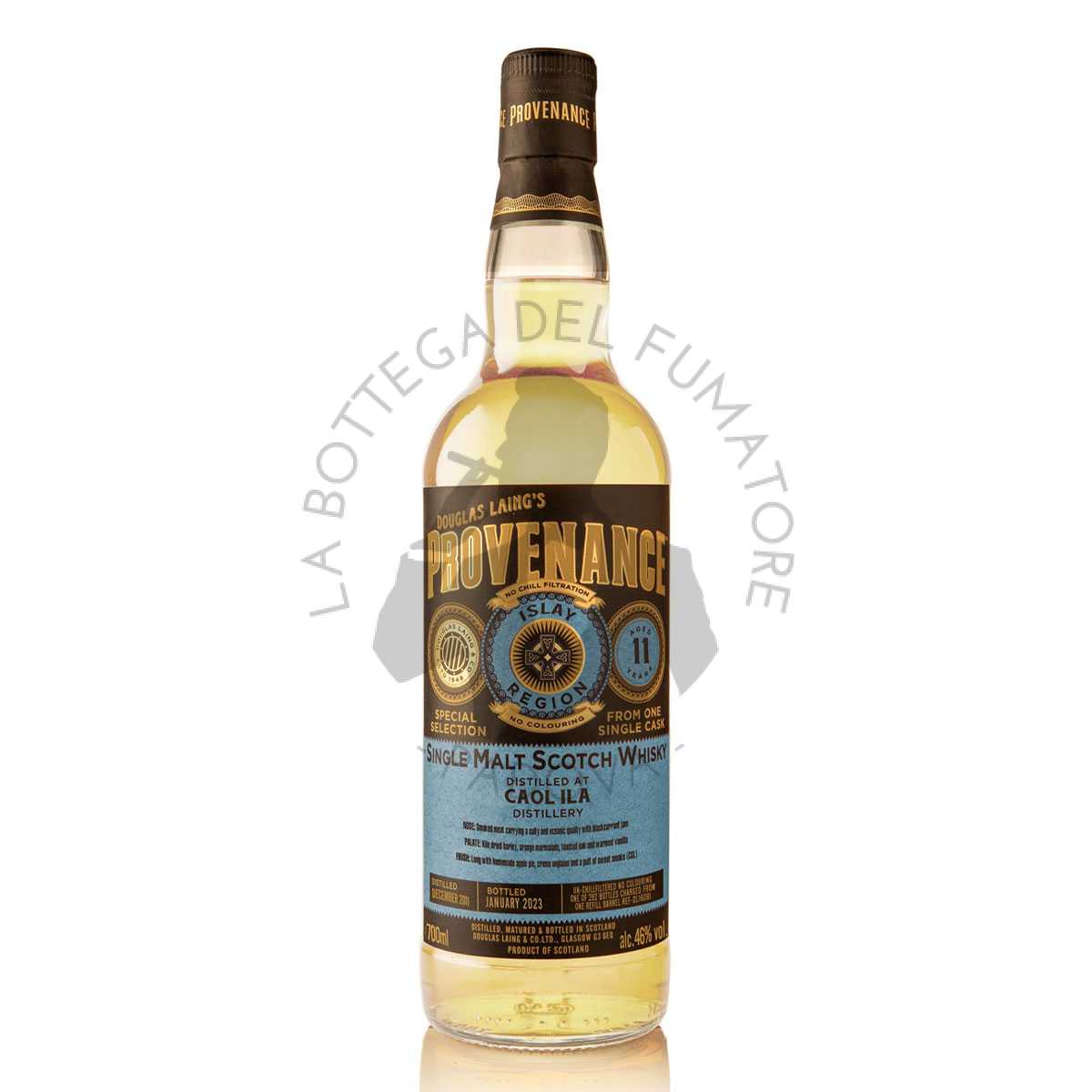 Distillato nel dicembre 2011 ed imbottigliato a gennaio 2023, questa espressione della distilleria Bowmore ha quindi trascorso 12 anni a maturare in botti hogshead “refill” ossia gia precedentemente utilizzate. Prodotto in appena 292 bottiglie per tutto il mondo, questo Douglas Laing Provenance Caol Ila 11 Years Old, viene offerto “il più naturale possibile”. Quindi senza alcuna colorazione o correzione, e soprattutto senza filtrazione a freddo.