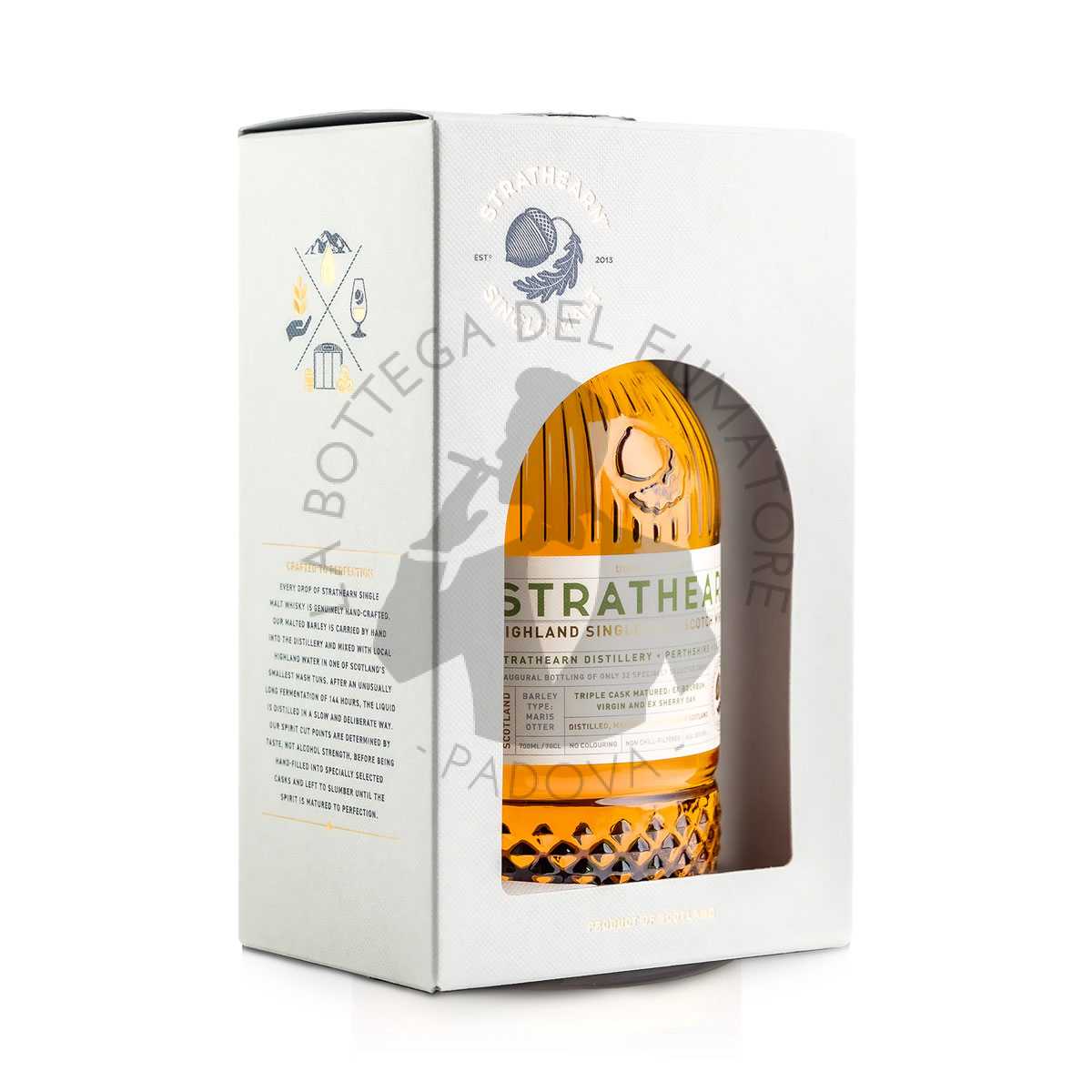 Da una delle più piccole distillerie scozzesi arriva uno dei malti più potenti del paese. Dando priorità al sapore rispetto alla resa alcolica. Douglas Laing Strathearn è una delle, se non l’unica distilleria a utilizzare ancora. Maris Otter Malt, che produce uno spirito deliziosamente cremoso e maltoso di nuova produzione. Realizzato alla perfezione, il nostro spirito è maturato nelle botti più fini, da cui assume un sapore immensamente ricco e raffinato, da piccole ghiande.
