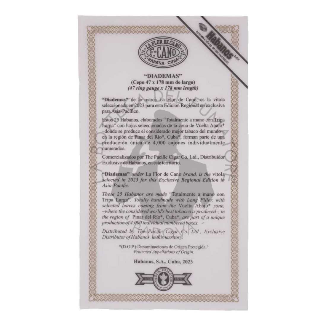 La Flor de Cano Diademas Edición Regional Asia Pacífico è una delle edizioni regionali più attese e prestigiose del brand cubano. Presentata ufficialmente verso la fine del 2023, è una ristampa di un formato classico che era stato interrotto negli anni ’90, con la stessa eleganza che ne fece un oggetto cult.