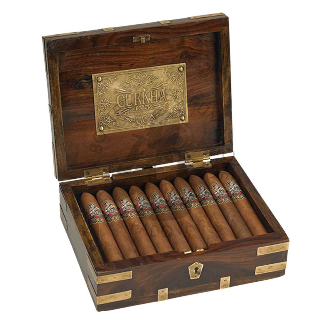 Il Gurkha 125th Anniversary è disponibile in scatole da 20 pezzi con quattro vitolas: Robusto. Rothchild. Torpedo. XO. Ogni scatola è realizzata a mano utilizzando il miglior legno di mango e rifinita con finissimi raccordi in ottone, appositamente progettati dal presidente di Gurkha Mr K. Ansozia.