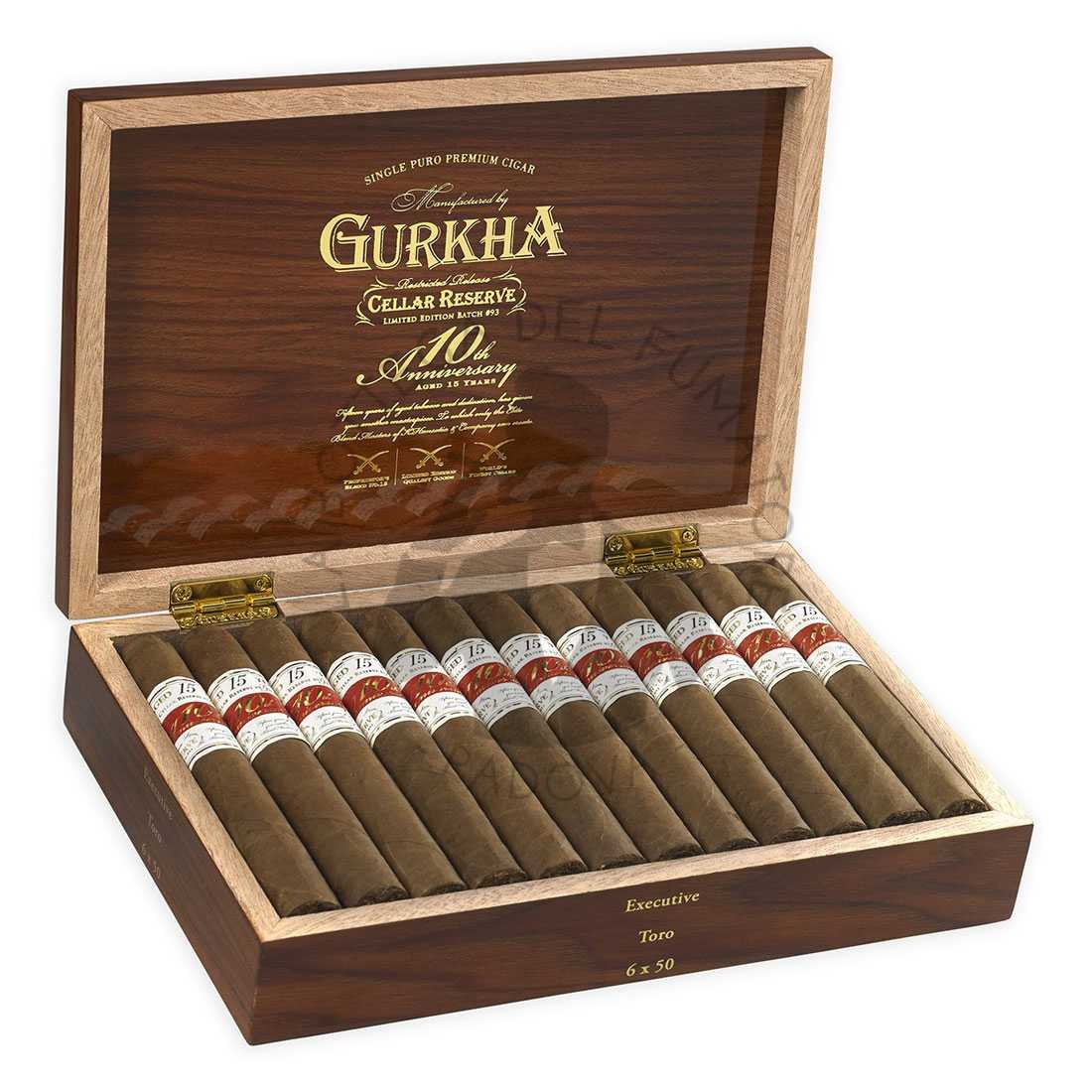 Gurkha Cellar Reserve 10th Anniversary Aged 15 Years Limited Edition è un regale tributo al decennale, di una linea iconica nel panorama dei sigari premium. Questo sigaro rappresenta il culmine dell’esperienza Gurkha nel valorizzare tabacchi invecchiati. Rilasciato inizialmente nel 2017 in edizione limitata, celebra i 10 anni della Cellar Reserve con un blend esclusivo di tabacchi da tripa invecchiati 15 anni.