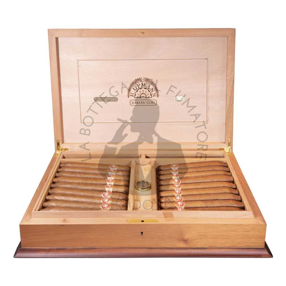 Il cofanetto umidificatore (humidor) che accompagna i sigari è una fedele riproduzione di un humidor degli anni ’20, elegantemente rifinito in legno pregiato e prodotto artigianalmente da maestri ebanisti cubani. L’attenzione al dettaglio, sia nel contenuto che nel contenitore, rende questa edizione una vera opera d’arte, pensata per collezionisti e intenditori.