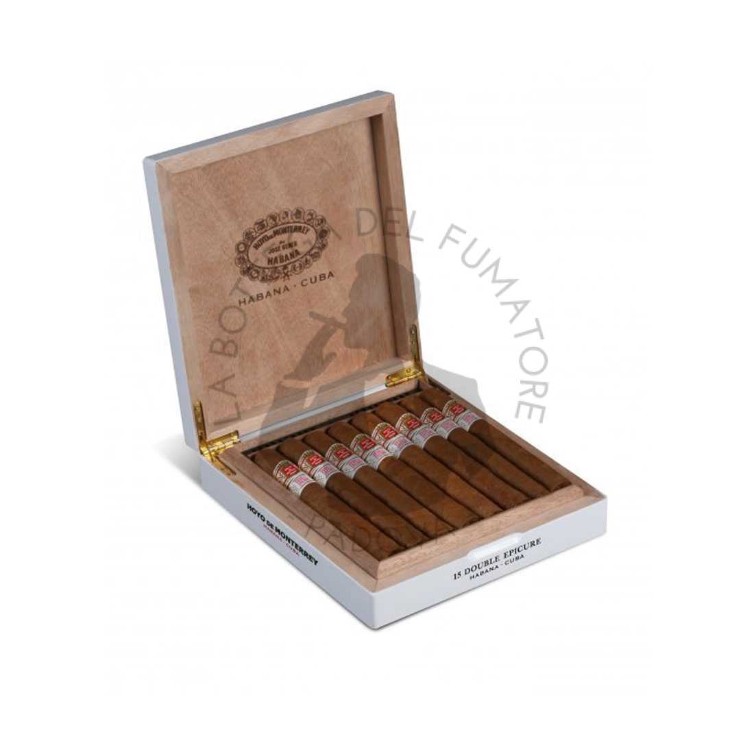 L’ Hoyo de Monterrey Double Epicure, regala un’esperienza di fumata lussuosa e prolungata, pensata per gli appassionati che cercano eleganza e complessità in un formato generoso. Questo sigaro sprigiona una forza media tendente al pieno, pur mantenendo l’equilibrio e la rotondità tipici del marchio.