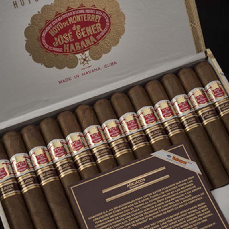 Questo Habanos Anejados va ad aggiungersi ai primi nati: i Romeo y Julieta Pirámides Añejados (cepo 52 x 156 mm) e Montecristo Churchills Añejados (cepo 47 x 178 mm) e Partagas Coronas Gordas. Anche gli Hoyo de Monterrey, cosi come i suoi predecessori, sono in quantità limitata, e sono stati invecchiati a Cuba tra i 5 e gli 8 anni prima della messa in vendita. Con l’invecchiamento i sigari subiscono una evoluzione organolettica che li rendono più rotondi e gradevoli al palato. Ottenendo così delicate note dolci e ricchi sentori di cedro.