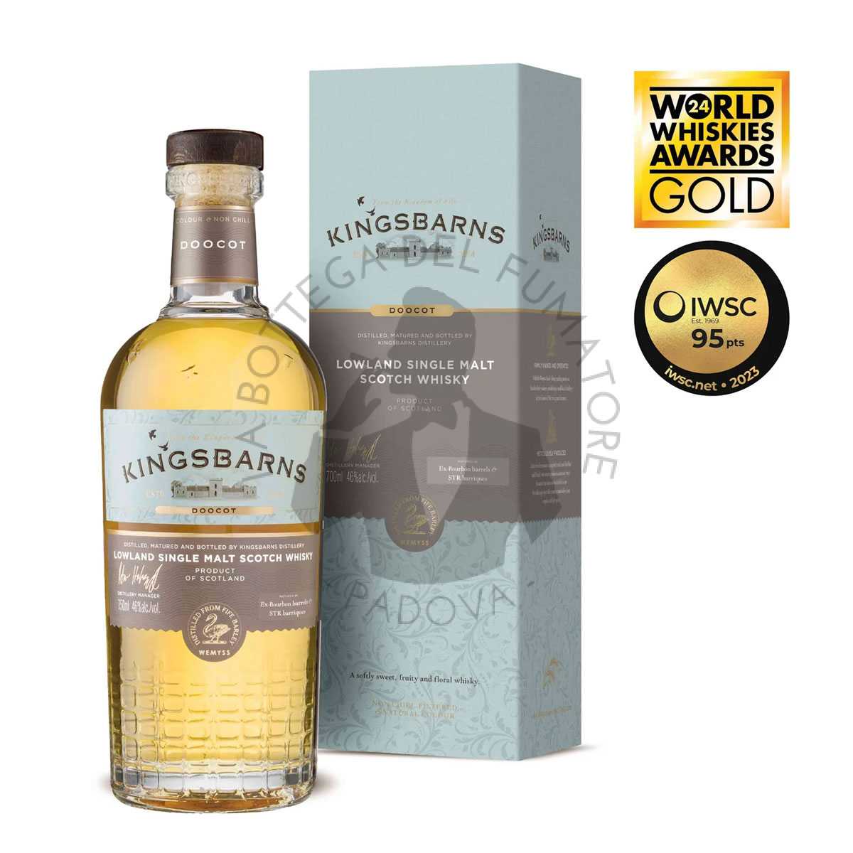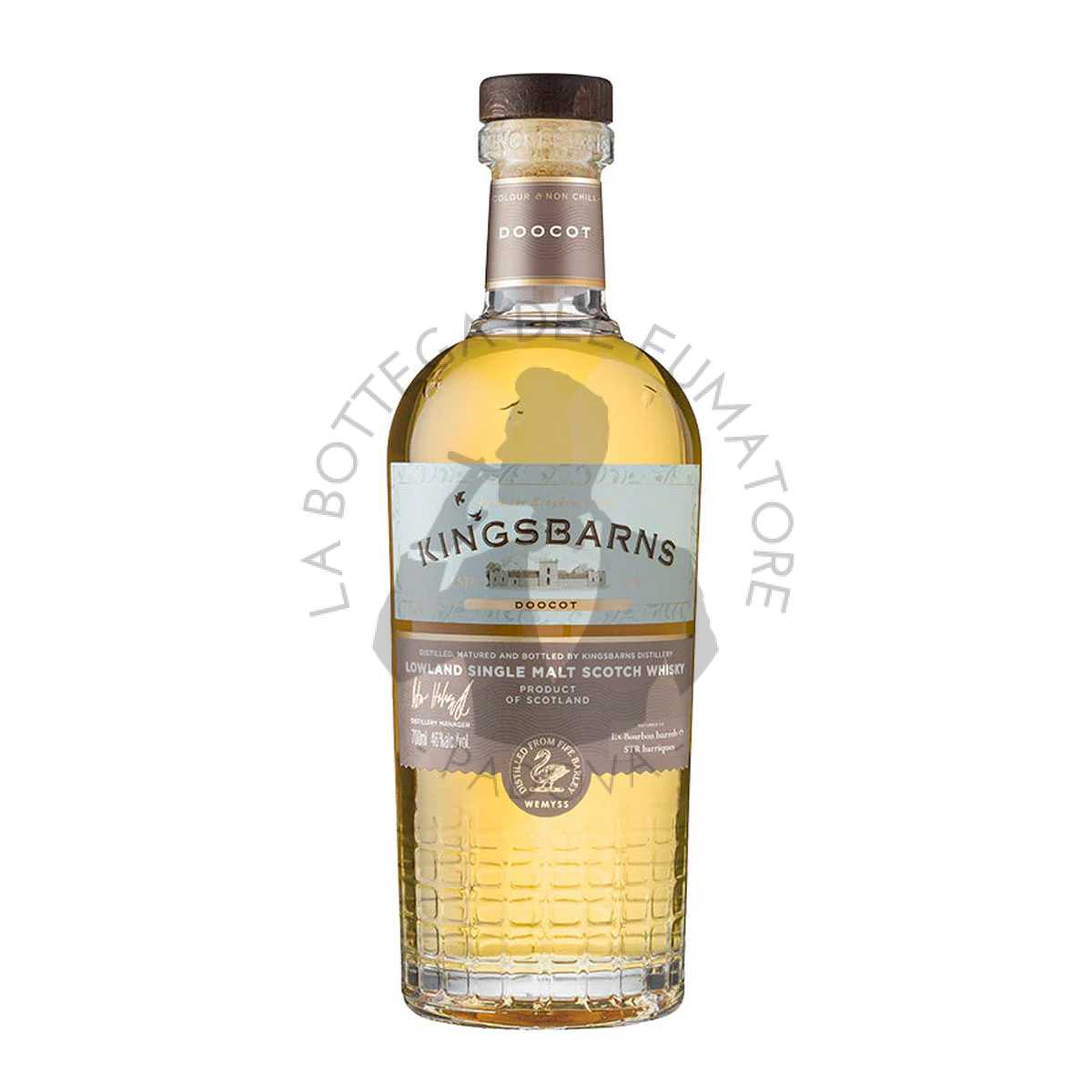 Il Kingsbarns Doocot, l’ultimo rilascio in ordine di tempo della distilleria Kingsbarn, ed è considerato il suo fiore all’occhiello. Distillato a partire da orzo raccolto nel raggio di 10 km dalla distilleria, Doocot ha maturato in botte per un periodo di tempo decisamente più lungo rispetto a quello dei suoi colleghi single malt. Isabella, la direttrice di produzione, ha personalmente (e minuziosamente) selezionato per la maturazione una combinazione di botti ex-Bourbon e vino rosso portoghese, queste ultime intagliate, tostate e ri-carbonizzate.