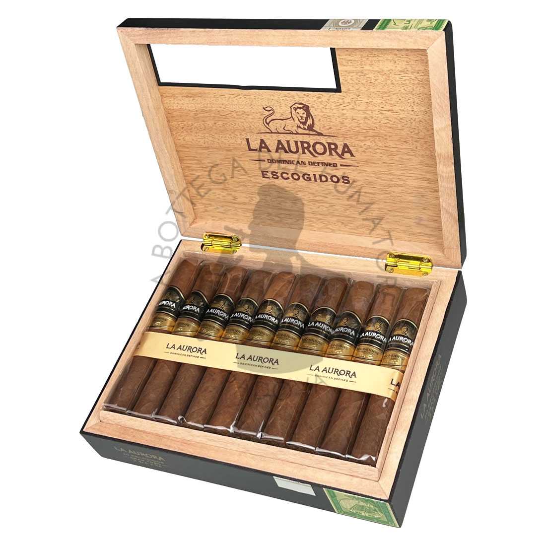 Aurora Escogidos incarna un perfetto equilibrio tra potenza moderata e intensità, con un profilo aromatico prevalentemente legnoso, esaltato da note cremose di caffè. Questa miscela di sapori è arricchita da dolcezza e da esplosioni speziate, completate da piacevoli sfumature di nocciola e noce. Frutto dell’eccellenza della più antica fabbrica di sigari della Repubblica Dominicana, questi sigari sono la scelta preferita degli appassionati alla ricerca di un’esperienza di degustazione eccezionale. L’Aurora Escogidos rappresenta quindi un capolavoro nell’arte della fabbricazione dei sigari dominicani. Che unisce classicismo e modernità per offrire agli intenditori un’esperienza di gusto raffinata e indimenticabile.