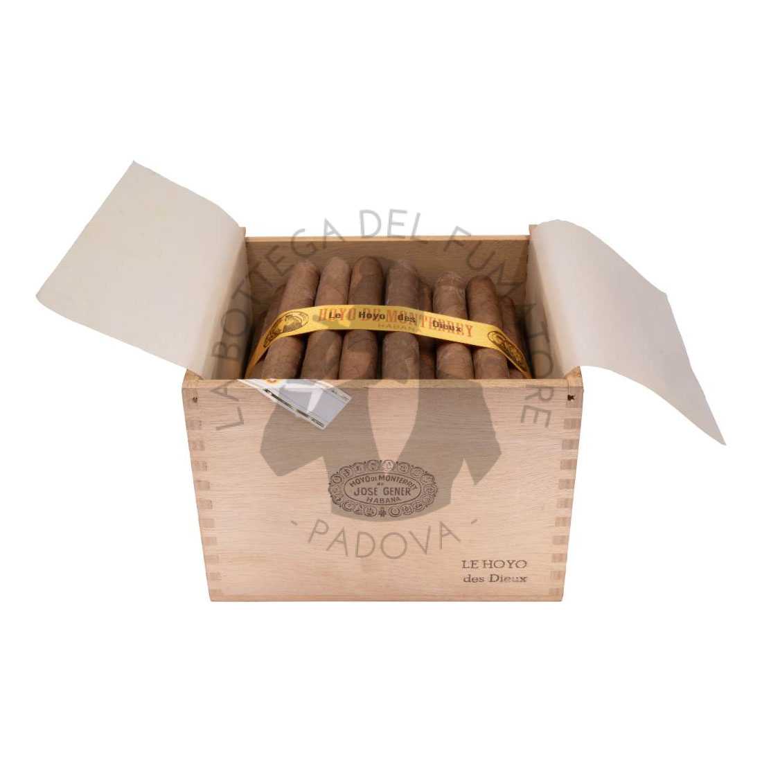 L’Hoyo de Monterrey Le Hoyo des Dieux è uno dei sigari che hanno fatto la storia della marca e che fa parte della serie “Le Hoyo” creata intorno agli anni ‘40. Il suo fomato Coronas Grandes (vitola de galera), misure: 155 mm di lunghezza per 42″ di cepo. Il più grande della famiglia, rappresentava eleganza e richiamo aristocratico. Questo Le Hoyo des Dieux ha accompagnato generazioni di aficionados. I suoi aromi di crema, vaniglia e cedro evocano un’epoca dorata: un sigaro dall’anima retrò, pensato per chi cercava raffinatezza e nuance delicate.