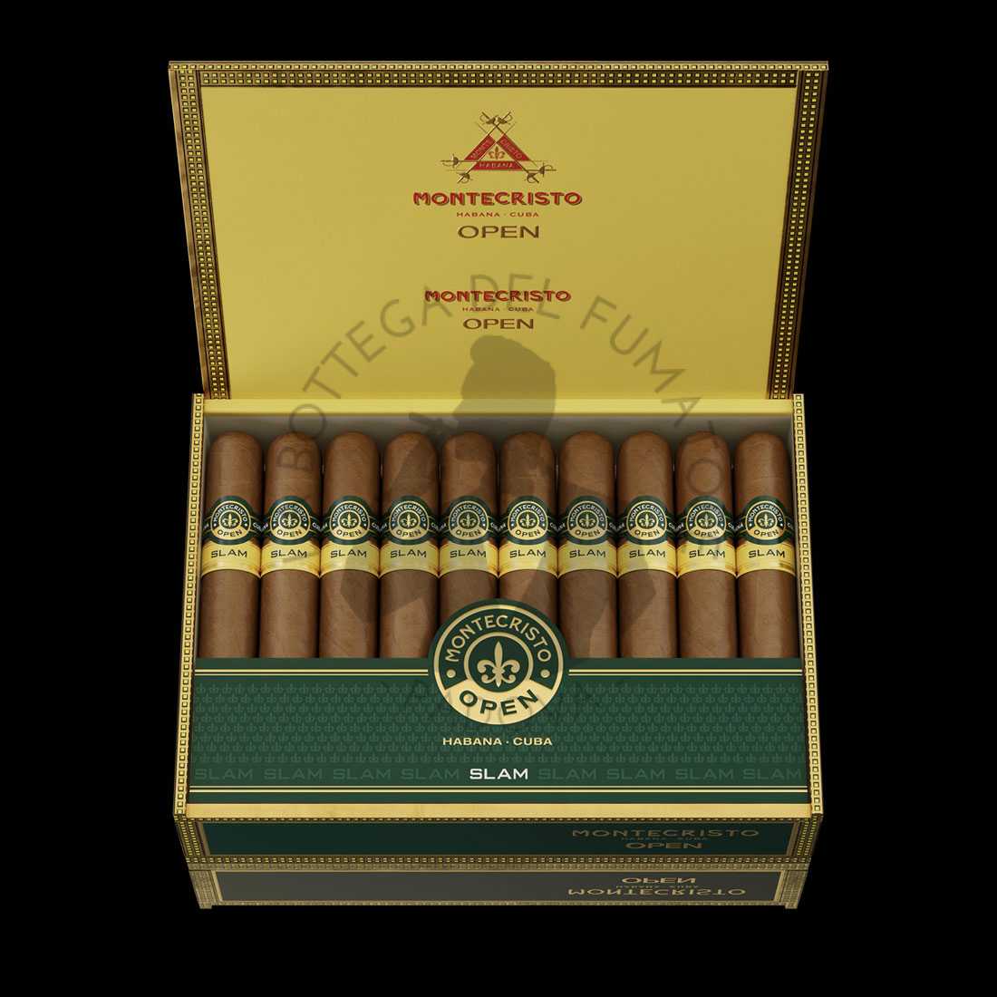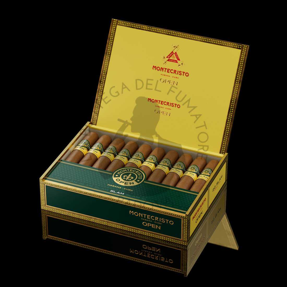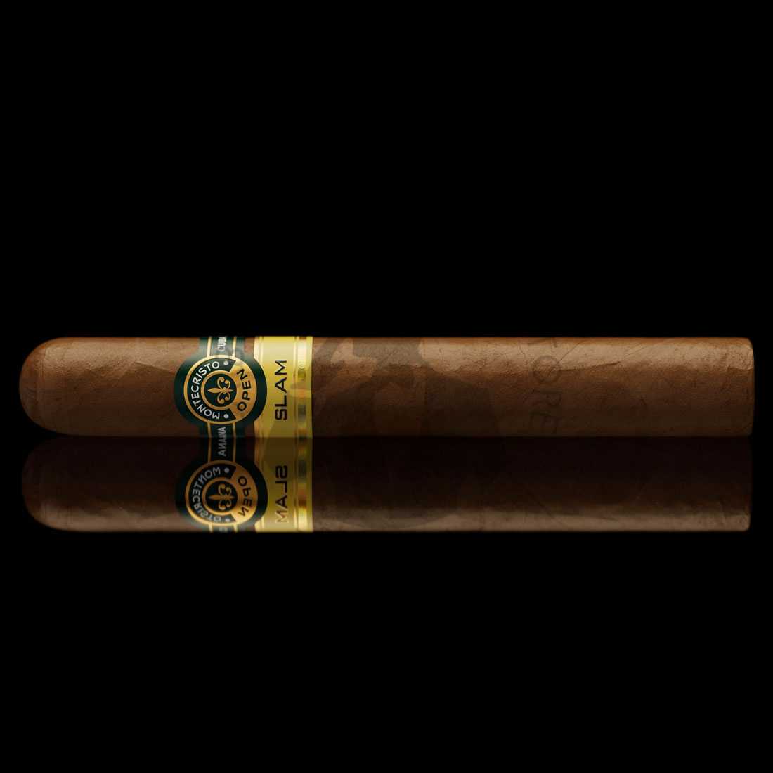 Il Montecristo Open Slam rappresenta l’ultima aggiunta alla Línea Open, introdotta ufficialmente durante il Festival del Habano XXIII del 2023. Questo formato (vitola de galera), chiamato Idílicos, misura 142 millimetri di lunghezza per un cepo di 52, collocandosi tra le vitolas più generose della gamma. Nasce per arricchire una linea pensata sin dall’origine per accompagnare i momenti all’aperto, con un approccio meno impegnativo rispetto ai Montecristo classici e con l’idea di proporre un’esperienza accessibile anche a un pubblico giovane o a fumatori alle prime armi.