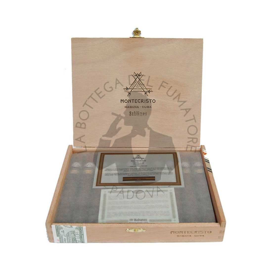Questi Montecristo sono stati rilasciati nel 2008, in quel periodo Habanos S.A. era solita mantenere le promesse, ed erano presentati in box Semi boîte nature da 10 unità ciascuna. I sigari erano adornati con l’anilla standard C, accoppiata all’iconica anilla oro-nera, tipica delle edizioni limitate cubane. In quell’anno Habanos ha rilasciato solamente tre edizioni limitate: questo Montecristo Sublimes, il Cuaba Piramides, ed infine il Partagás Serie D No.5.