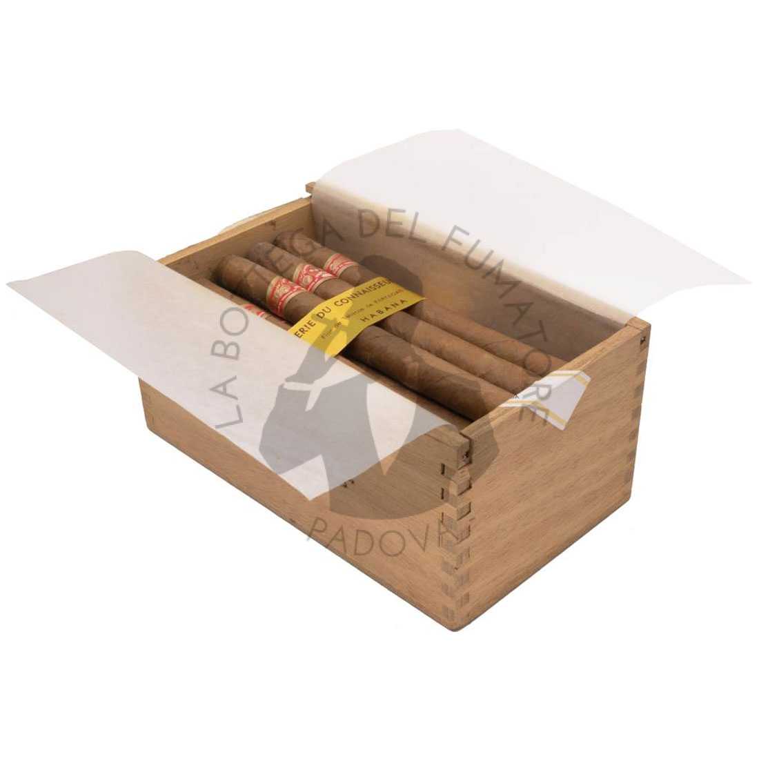La Partagás Serie du Connaisseur rappresenta una delle espressioni più raffinate e meno conosciute della casa cubana. Composta da tre vitolas slanciate – No.1, No.2 e No.3 – questa linea, lanciata nel periodo pre-1960, era pensata per intenditori alla ricerca di eleganza più che di potenza. I sigari venivano confezionati in slide-lid box da 25 pezzi e, fino al 2005, privi di anilla. Con il tempo, la serie è diventata sempre più rara, fino a cessare la produzione nel 2010. Oggi rimane un tassello prezioso della storia Partagás, simbolo di un’epoca in cui il long panetela era il formato prediletto dagli appassionati più sofisticati.