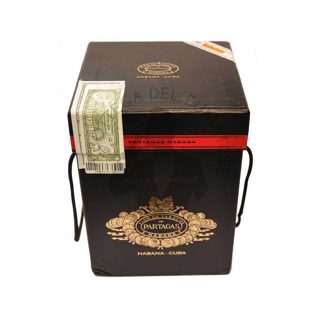 La Confezione di questi Partagas è realizzato in fine ceramica, di colore nero con dettagli dorati e un piccolo umidificatore integrato nel coperchio. All’interno un sottile strato di cedro separa i sigari dal contatto diretto con la ceramica, cosi da preservarne l’umidità e arricchirne i sapori. Ogni giara contiene 25 sigari formato Petit Pirámides (lunghezza 127 mm per 50″ di cepo). Una scelta “di tendenza” per i palati che cercano una fumata intensa e compatta.