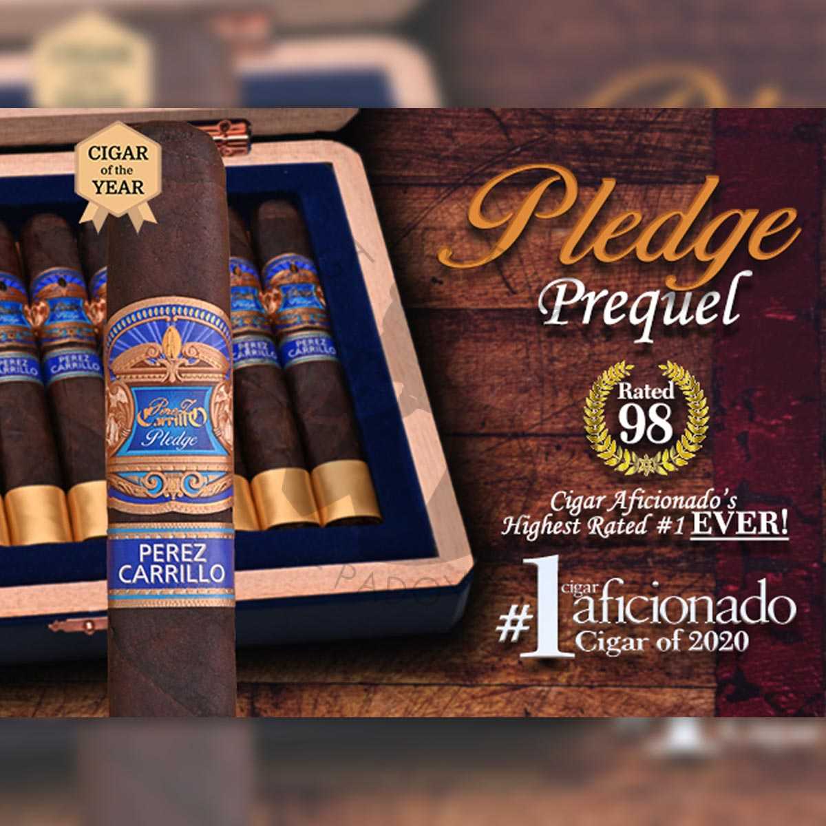 Il Perez Carrillo Pledge Prequel, rappresenta il Robusto della serie Pledge. È stato nominato “Cigar of the Year” nel 2020 dalla rivista Cigar Aficionado, con un punteggio di 98 centesimi. Ed è la terza uscita della “Serie de Familia”, dopo Encore (1° Cigar of the Year nel 2018). E La Historia (2° Cigar of the Year nel 2014).