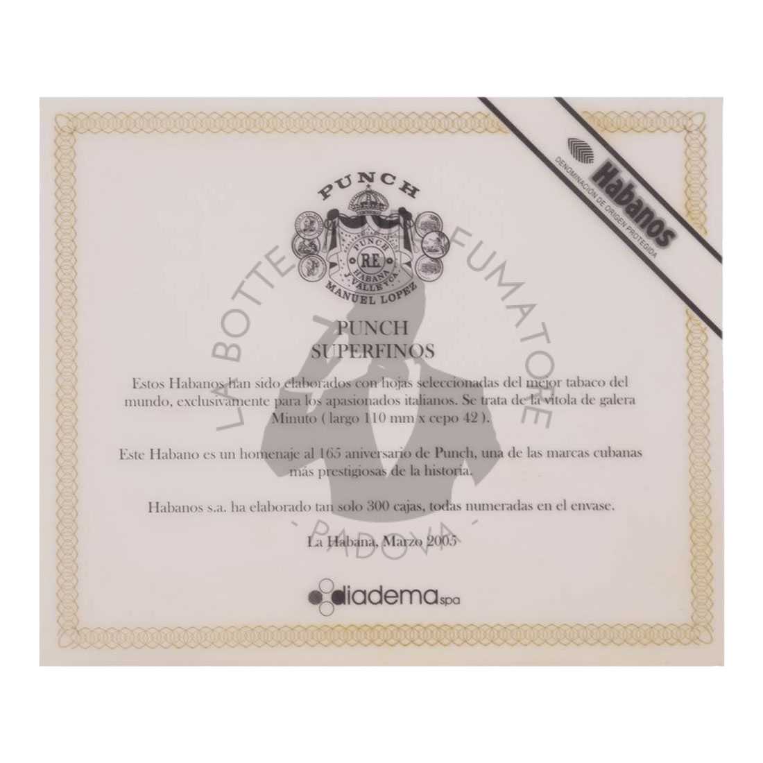Nel 2005 Habanos S.A., su esplicita richiesta di Diadema S.p.A., ha presentato una delle Edicion Regionales più piccole mai realizzate: il Punch Superfinos Edicion Regional Italia 2005. La cui vitola de galera era *Minutos* e misurava quindi 42″ di cepo per 110 mm di lunghezza. Il primo lotto di produzione prevedeva appena 300 scatole numerate da 50 sigari ciascuna, rilasciate nel corso del 2005. I sigari contenuti in queste prima scatole, avevano l’anilla secondaria rosso-argento con la semplice scritta “Edicion Regional”.