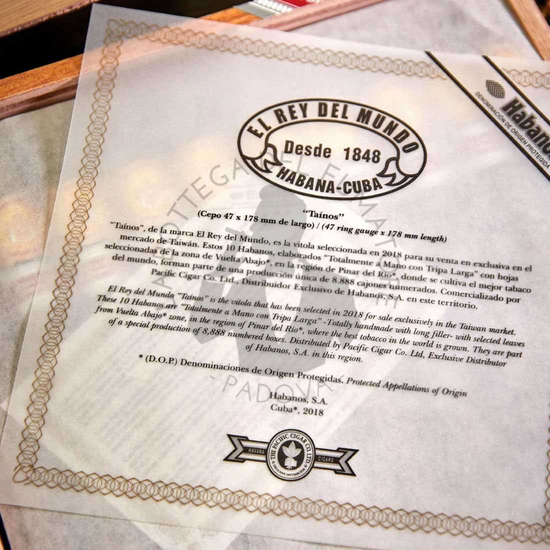 La scelta del formato Taínos, ritirato dal catalogo El Rey del Mundo nel 2006, ha fatto vibrare il cuore degli intenditori: si tratta di una vitola pre-rivoluzionaria reinterpretata per un’edizione territoriale, capace di evocare memorie e nostalgia dell’indimenticato sigaro cubano.