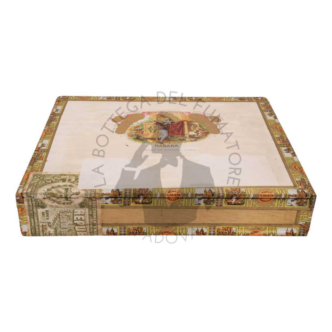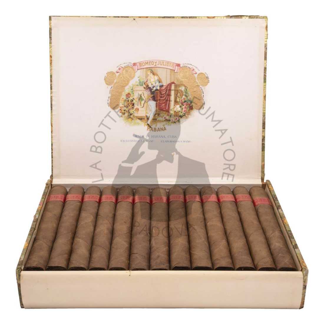 L´equilibrata e aromatica ligada di selezionate foglie di tripa e capote provenienti da Vuelta Abajo, fanno dei Romeo y Julieta un classico da gusto medio. Oggi Romeo y Julieta gode di fama mondiale e offre la più ampia selezione di vitolas di Habanos, tutte elaborate “Totalmente a Mano, Tripa Larga” con foglie provenienti da Vuelta Abajo. (D.O.P)*