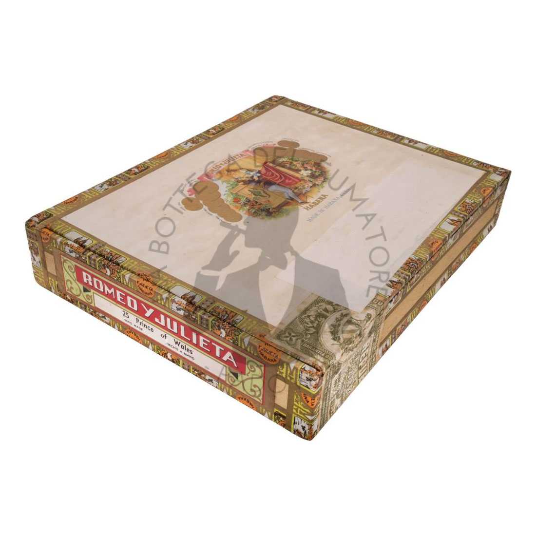 Il confezionamento rispettava i canoni classici di Romeo y Julieta: scatole di legno finemente decorate (habilitada), da 10 e da 25 unità. I sigari erano decorati con l’anilla standard A di colore rossa e oro, che richiamava la tradizione e la continuità di stile. Non era un’edizione limitata, bensì parte della produzione regolare, ma per formato e nome portava con sé un senso di esclusività. Accendere un Prince of Wales significava concedersi una lunga fumata lenta e misurata, in cui il tempo assumeva una dimensione diversa.