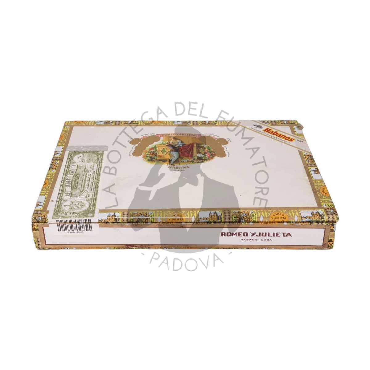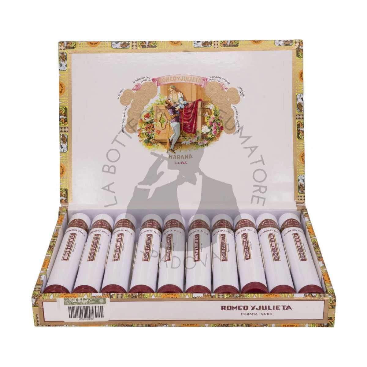 L´equilibrata e aromatica ligada di selezionate foglie di tripa e capote provenienti da Vuelta Abajo, fanno dei Romeo y Julieta un classico da gusto medio. Oggi Romeo y Julieta gode di fama mondiale e offre la più ampia selezione di vitolas di Habanos, tutte elaborate “Totalmente a Mano, Tripa Larga” con foglie provenienti da Vuelta Abajo. (D.O.P)*