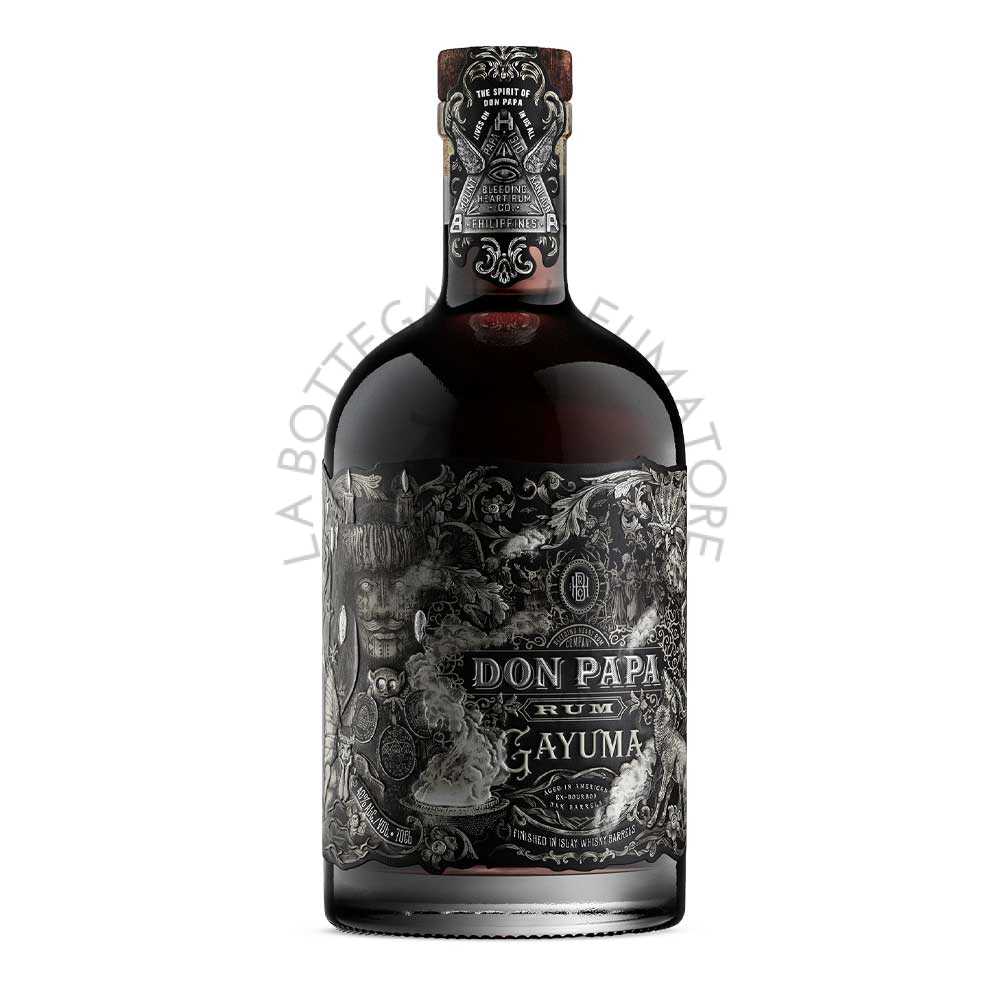 Dal punto di vista tecnico, la base resta il rum ottenuto dalla melassa di canna da zucchero locale, fermentata e distillata in colonne, come da stile tipico dell’isola. Successivamente, il distillato viene affinato in una combinazione di botti ex-whisky scozzese torbato. Che punta a esaltare profondità più intense rispetto alle espressioni classiche del marchio. Gayuma si colloca infatti come un’edizione destinata a mostrare il lato più torbato, affumicato e sensuale del mondo Don Papa, quasi un ponte tra tradizione tropicale e suggestioni ispirate a spiriti e rituali precoloniali. Un rum pensato per chi cerca qualcosa di diverso, enigmatico e simbolico.