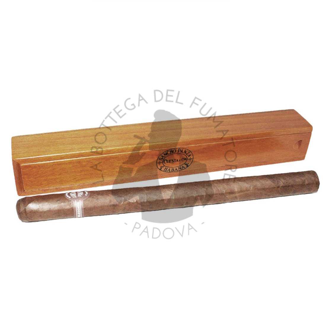 Colossale e signorile, il Sancho Panza Sanchos è un Gran Corona (vitola de galera – misure 235 mm di lunghezza per 47″ di cepo). Tra i formati più imponenti mai realizzati a Cuba. Totalmente a Mano a Tripa Larga di forza media, con trippa e capote provenienti dalla Vuelta Abajo (Pinar del Río), la culla dei migliori Habanos. Questo sigaro è nato in epoca pre-1960 e legato alla tradizione storica della marca (fondata nel 1848). È stato discontinuato nel 2006, dopo aver resistito più a lungo di quasi tutte le altre Gran Corona rimaste in produzione regolare.