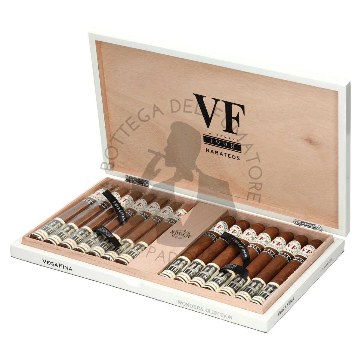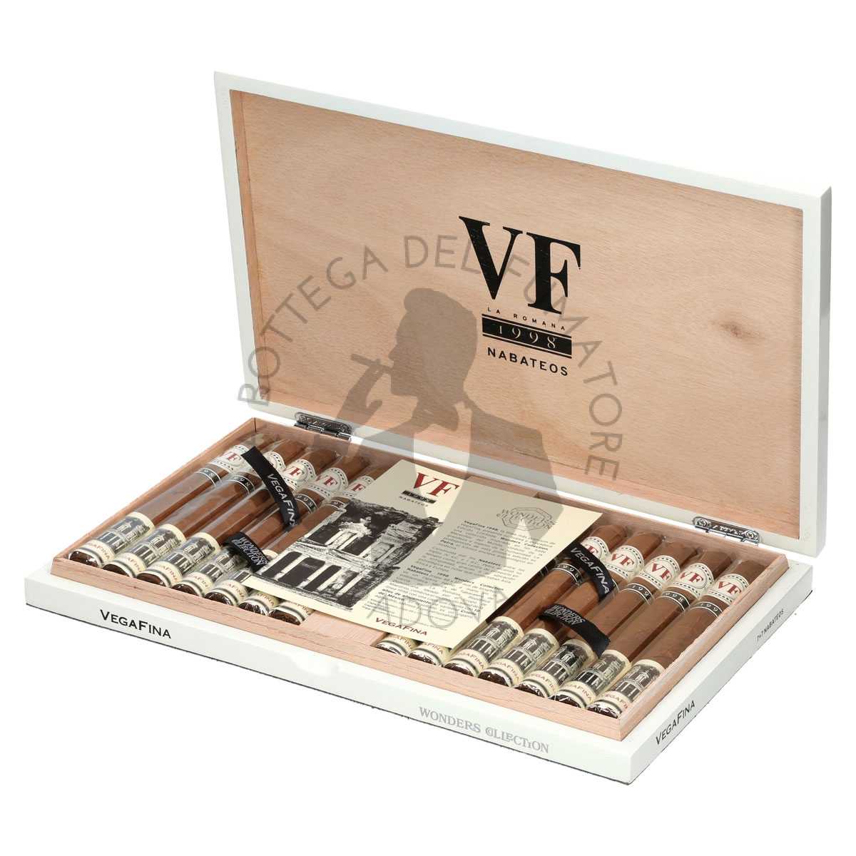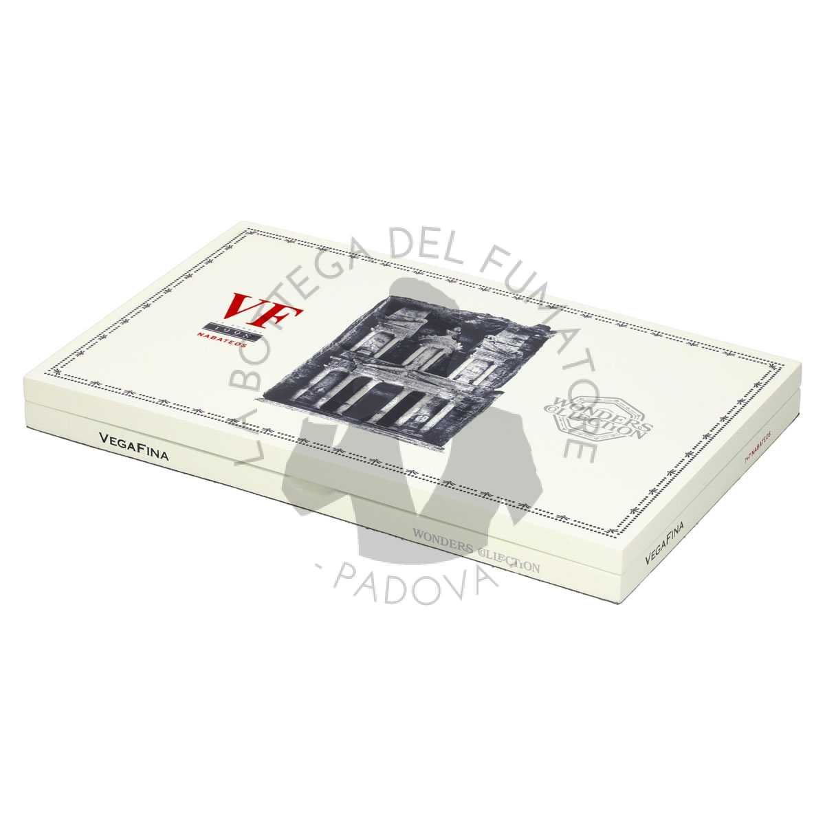 VegaFina è un marchio che nasce con l’obiettivo di offrire sigari eleganti, equilibrati e accessibili, puntando su blend accurati e su una costruzione attenta. Storicamente fondata nella Repubblica Dominicana, VegaFina produce diverse linee destinate sia a fumatori esperti che a chi si avvicina al mondo dei sigari. La linea “1998” rappresenta la fascia più premium del marchio, con blend ricercati e materiali selezionati. La “Wonders Collection” (a cui appartiene la Nabateos). Rappresenta un ulteriore passo verso l’esclusività: ogni edizione celebra una “meraviglia” del mondo, unendo tabacchi di qualità, cura artigianale e packaging raffinato. In sintesi, VegaFina coniuga artigianalità, qualità e gusto contemporaneo in sigari dal carattere equilibrato e piacevole.