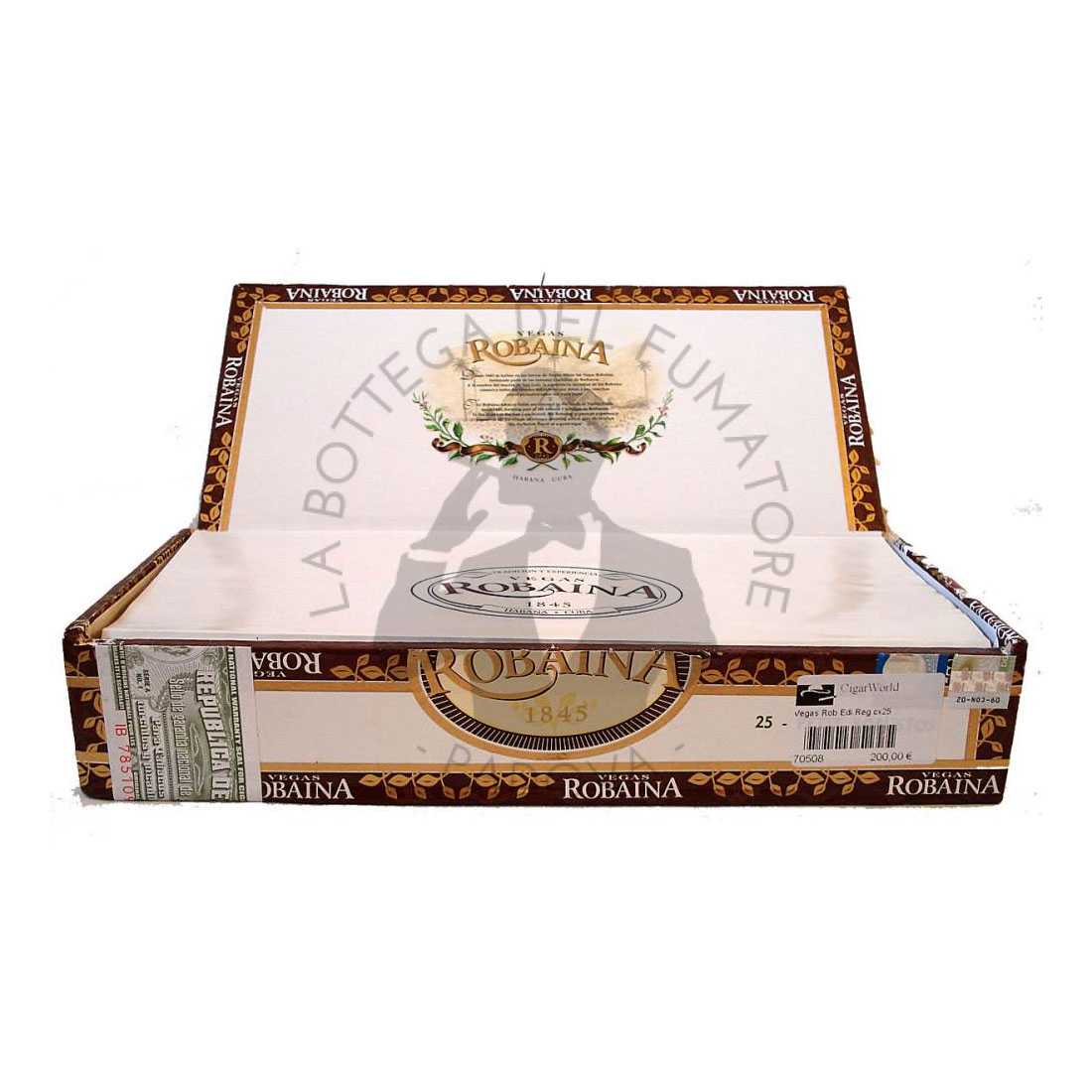 Prodotto in quantità estremamente limitata, con circa 600 scatole da 25 pezzi numerate, il Petit Robusto divenne subito un oggetto da collezione, accresciuto dalla sua appartenenza al ristretto gruppo delle Ediciones Regionales. La sua fascia di tonalità Colorado Claro dona un aspetto elegante e raffinato, mentre la doppia anilla – quella classica Vegas Robaina accompagnata dalla rossa “Exclusivo Portugal” – ne certifica l’esclusività.