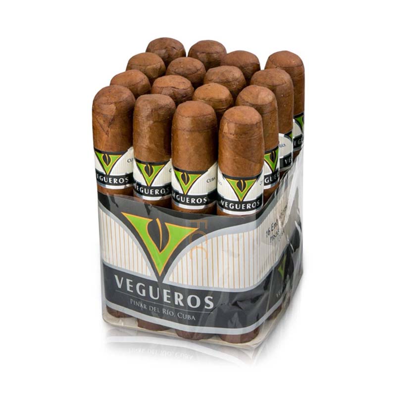 Anche l’immagine della marca e il packaging sono stati rinnovati: tutte e tre le vitolas son disponibili sia in petacas da 4 e in mazos da 16 sigari contenuti in una pratica ed elegante latta. Tutte le vitolas di Vegueros sono elaborate “Totalmente a Mano, Tripa Larga”.