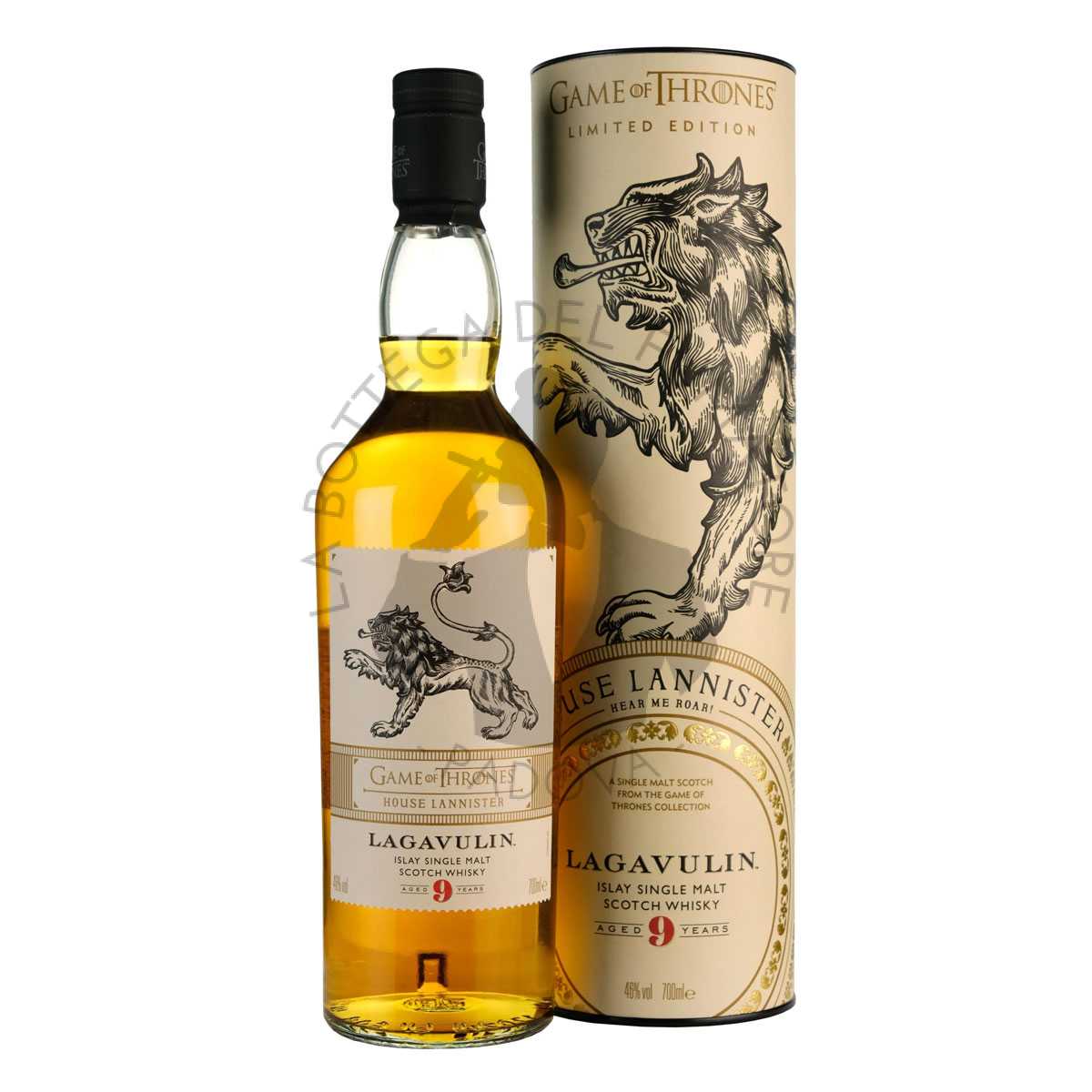 Il Lagavulin 9 Years Old (House Lannister) è un single malt Scotch whisky invecchiato per almeno 9 anni in botti di rovere americano, precedentemente utilizzate per la maturazione del bourbon. Questo single malt è prodotto e imbottigliato al 46% vol. dalla distilleria Lagavulin, che da oltre 200 anni è tra i brand più apprezzati e conosciuti al mondo