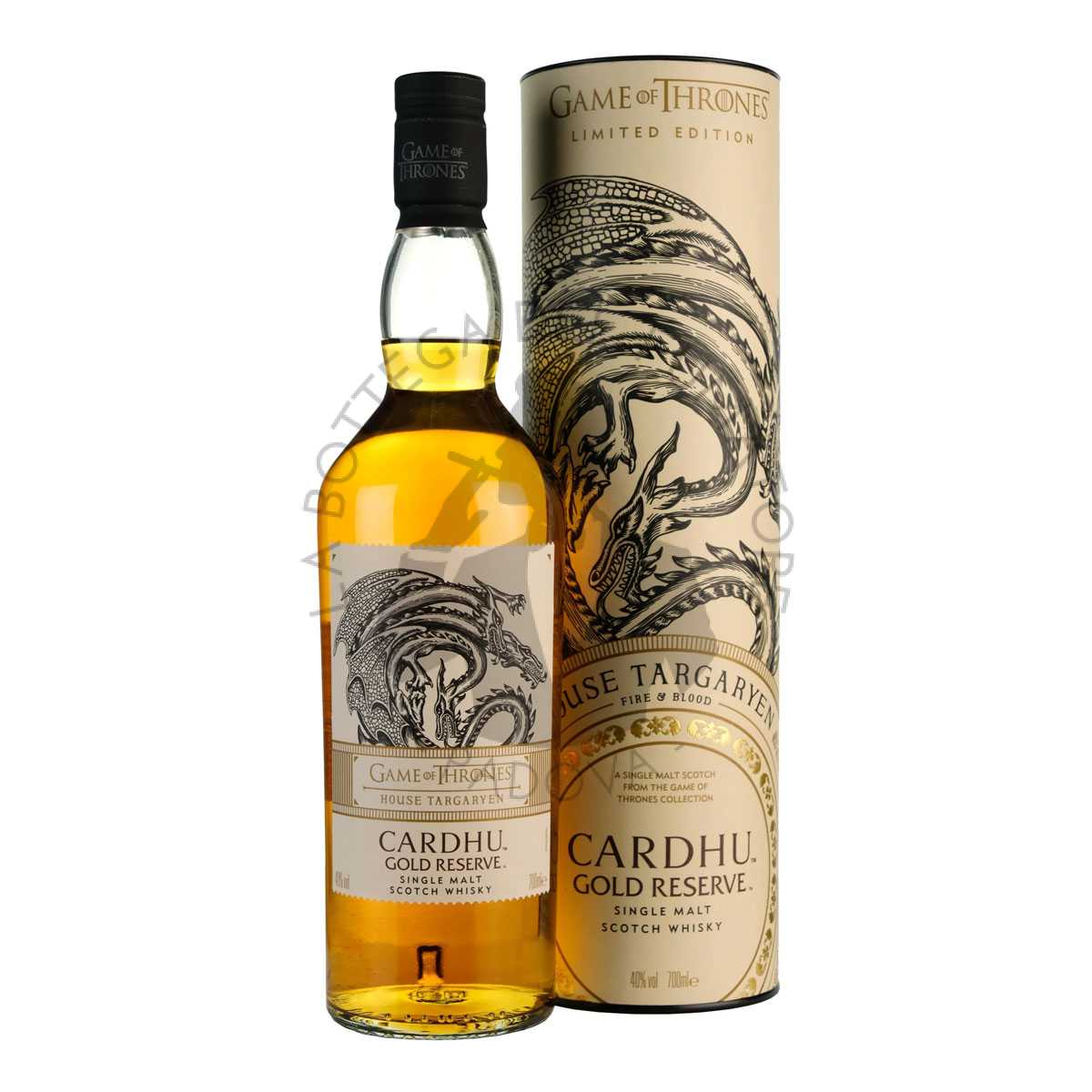 Il Cardhu Gold Reserve (House Targaryen) è un single malt Scotch whisky invecchiato in botti di rovere selezionate a mano, questo rilascio ha un aroma particolarmente fruttato con un gusto secco e speziato. Imbottigliato al 40% Vol. Senza dichiarazione di età (N.A.S.).