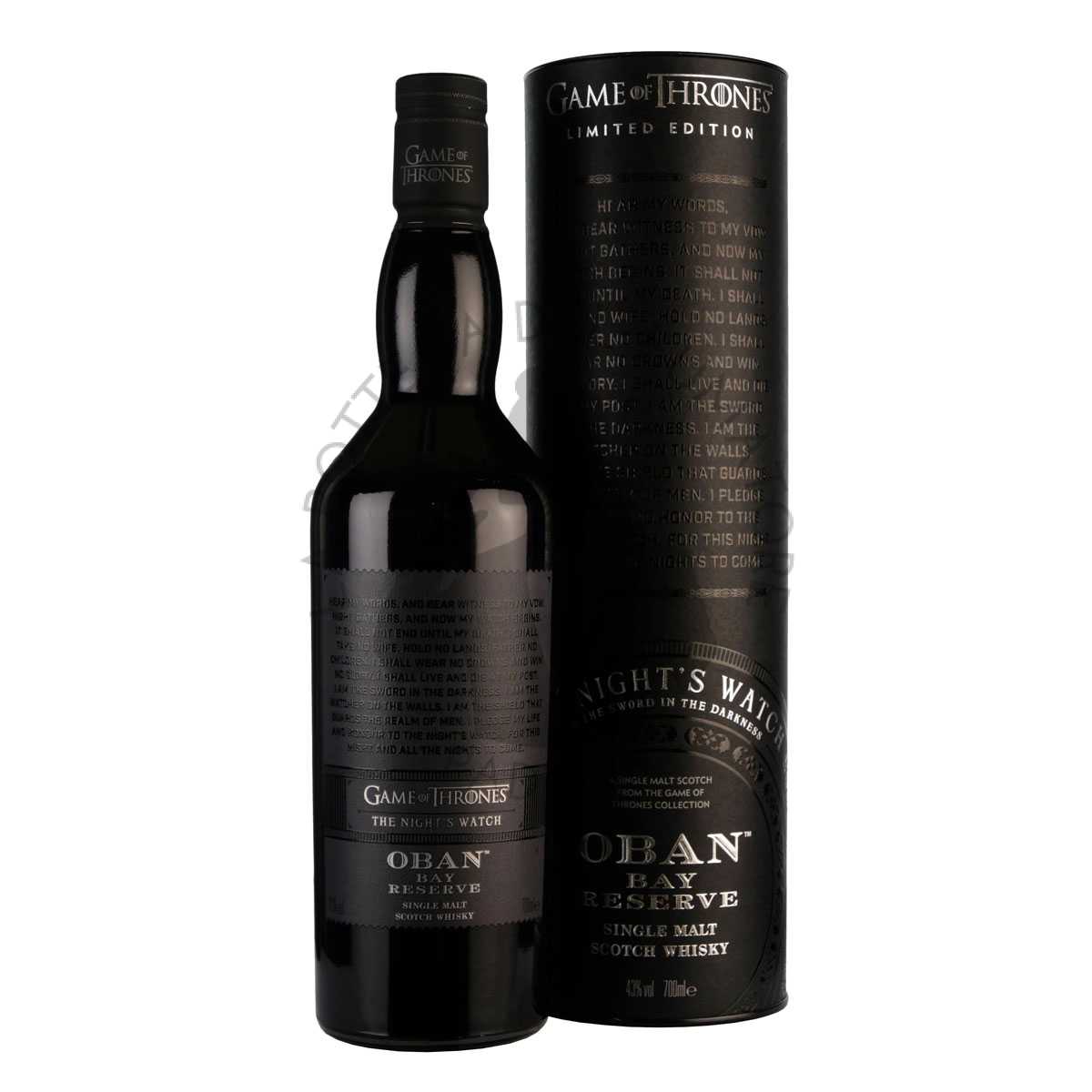Oban Bay Reserve (The Night’s Watch) è un single malt Scotch whisky invecchiato senza definizione d’età (N.A.S.). In botti ex-bourbon, nell’omonima baia, affacciata sul mare ma ancorata alla terraferma. Questo single malt è un bellissimo mix tra i torbati delle isole, e i migliori whisky delle Highland. Imbottigliato all’origine, al 43% vol.