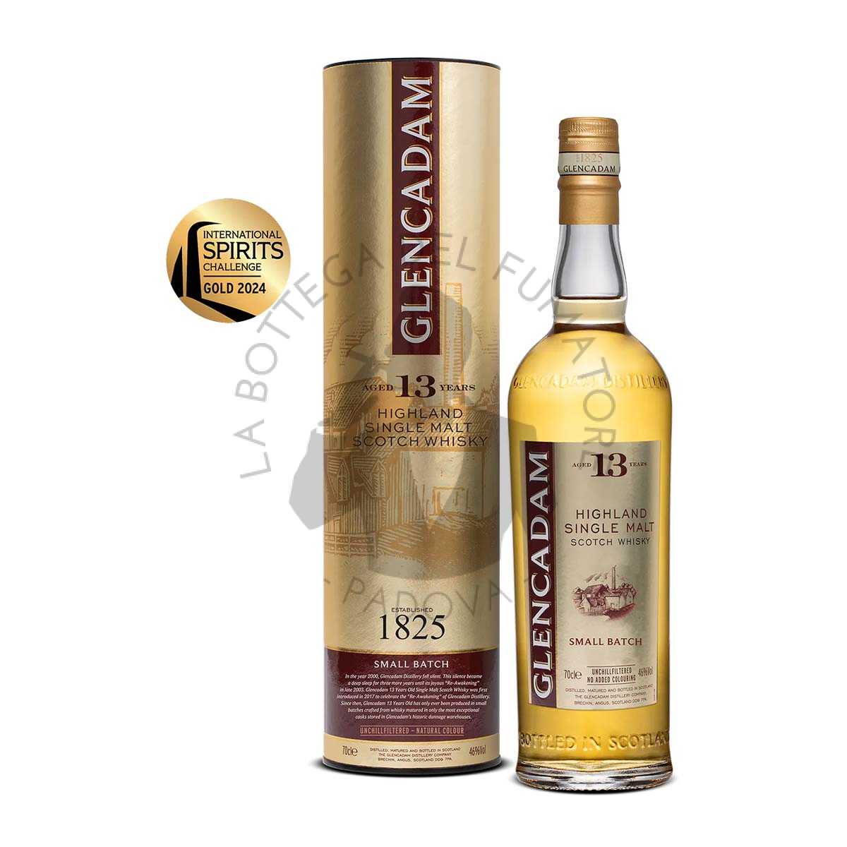 Distillato in piccoli lotti, Glencadam 13 Years Old è maturato nelle migliori botti di ex-bourbon di rovere americano selezionate a mano. Imbottigliato alla gradazione di 46% ABV, al suo colore naturale e senza filtraggio a freddo. Glencadam 13 Years Old mostra un profilo di sapore ricco di nocciole, e cremoso. Insieme ad aromi di frutta tropicale, per la quale i Glencadam Single Malts Scotch Whisky sono noti. Rendono questo Dram complesso e ben bilanciato.